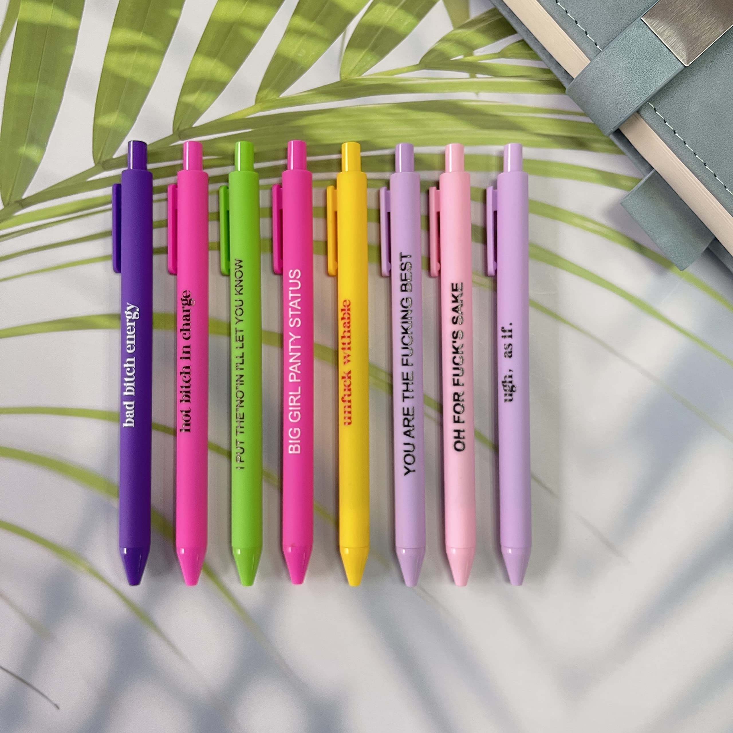 🎁Funny pens for the home, office, or on-the-go. A must among office supplies if you want to keep your day light, naughty, and hilarious without being too rude. 🎁8 smooth rubberized barrel finish pens. All pens are black ballpoint.