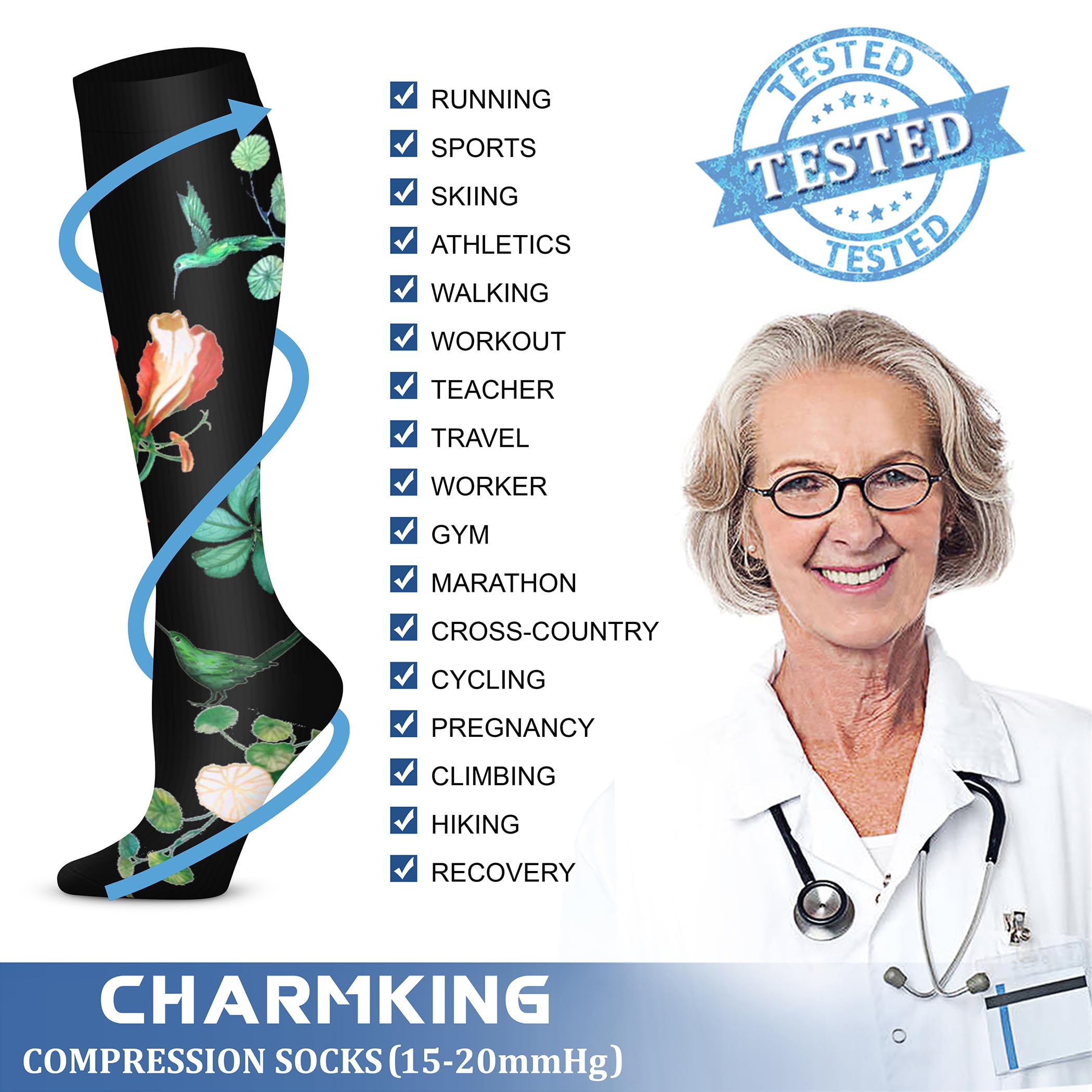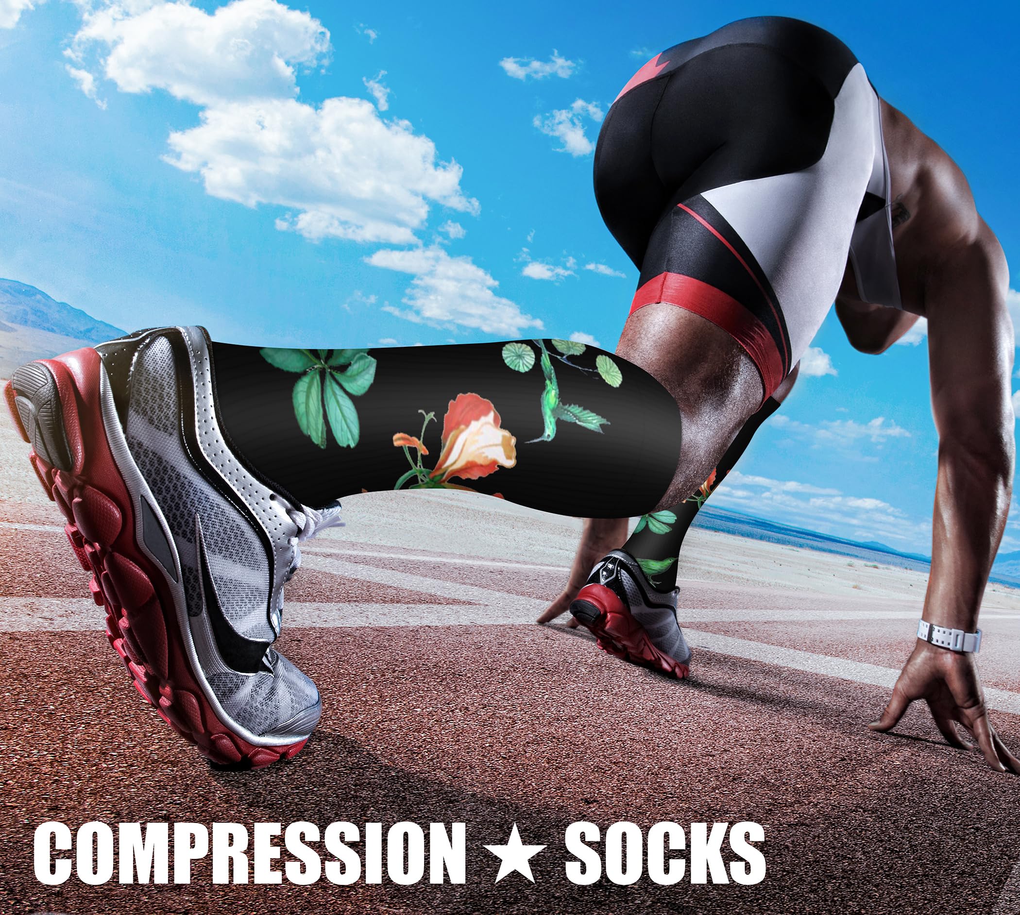 COMPRESSION SOCKS - We intend combining fashion, technology and science to bring you the triple comfort without. The material of our compression socks are upgraded with nylon percentage from 40% to 85%. Delivers 360-degree stretch for greater flexibility and durability. Breathable high performance fabric keeps an optimal temperature.