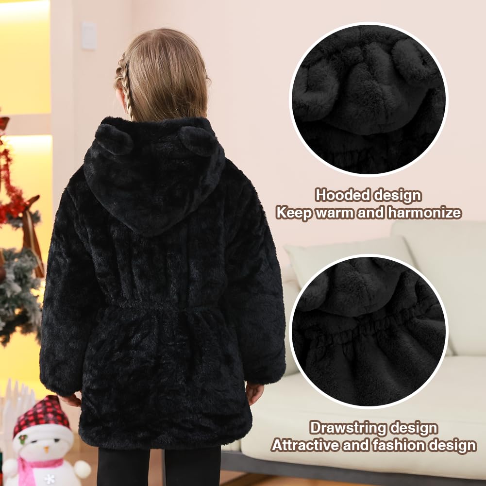 Winter ultra Choice: There are 4 different colors of toddler girls thickened plus faux fur hooded jacket winter outwear to choose from. The adorable girls winter fleece clothes has an all-match solid design and a bear ear hood that'll protect your baby's head from wind and cold. The baby kids winter snowsuit is sure to keep your baby girls and boys warm during the colder months