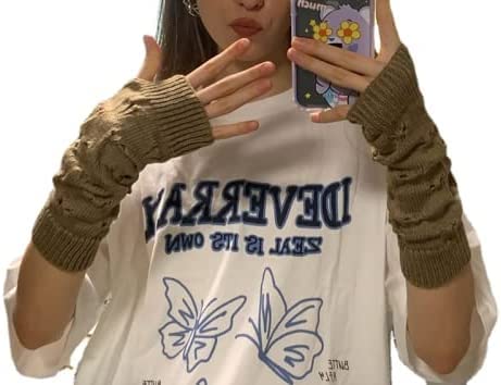 Set Include: 1 Pair Knit Ripped Gloves