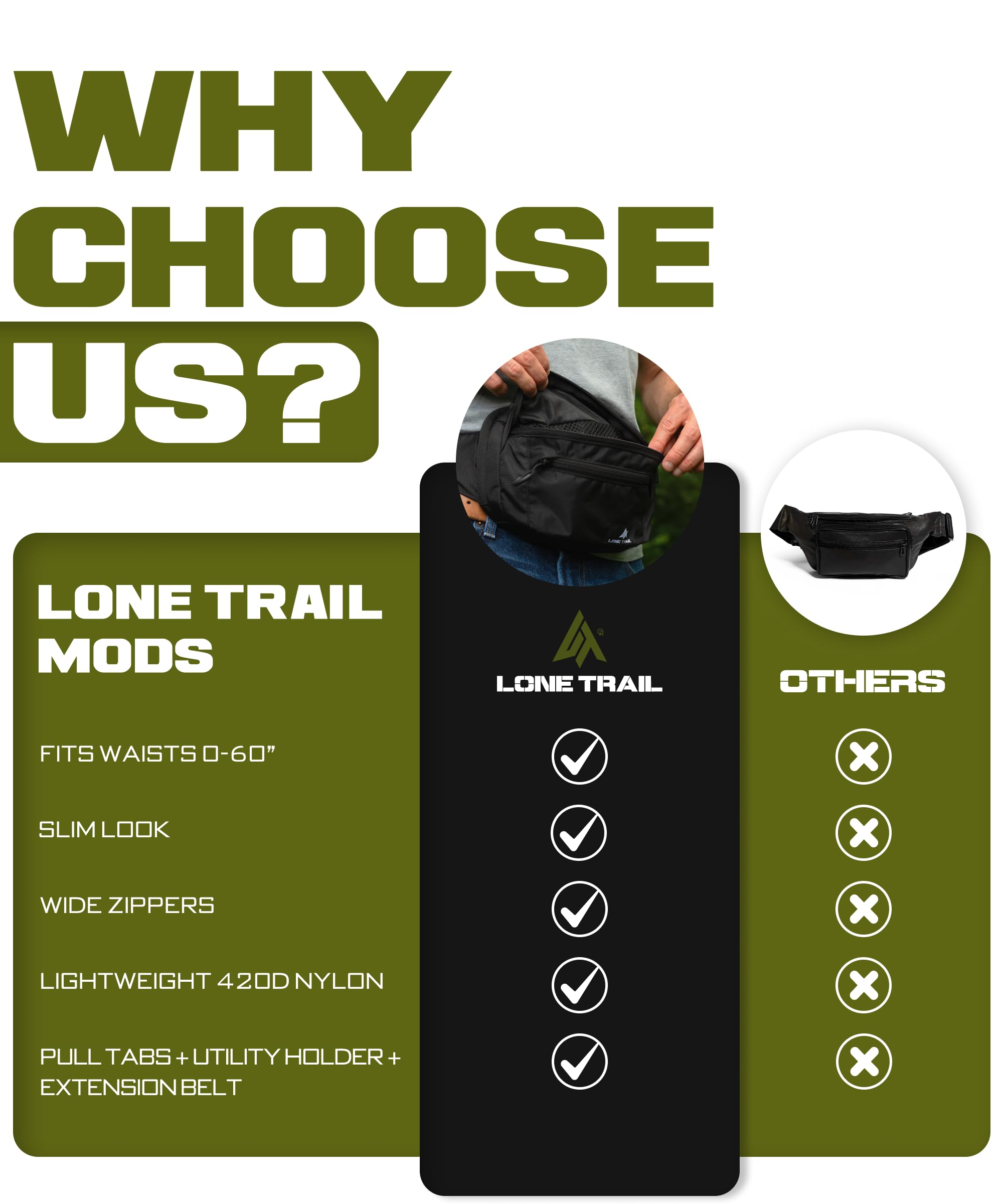 Tactical fanny pack for men with extra gear space: At 11.5"x6.5", this pack holds tools, tech, or trail snacks with ease. It’s ideal for longer outings or heavy daily carry, a larger, low-profile solution that keeps your kit streamlined.