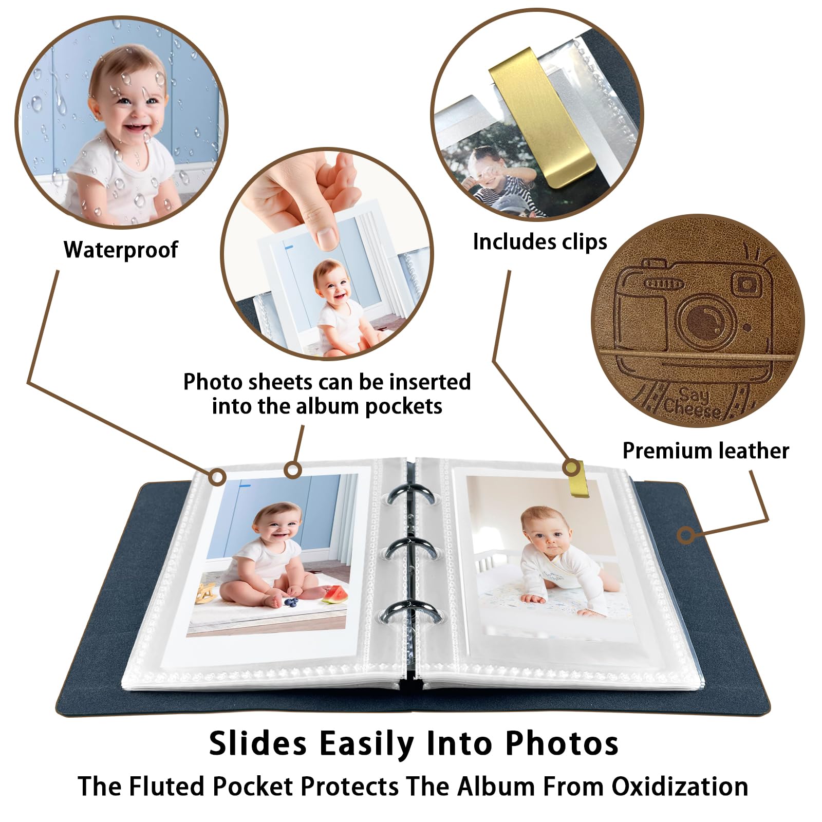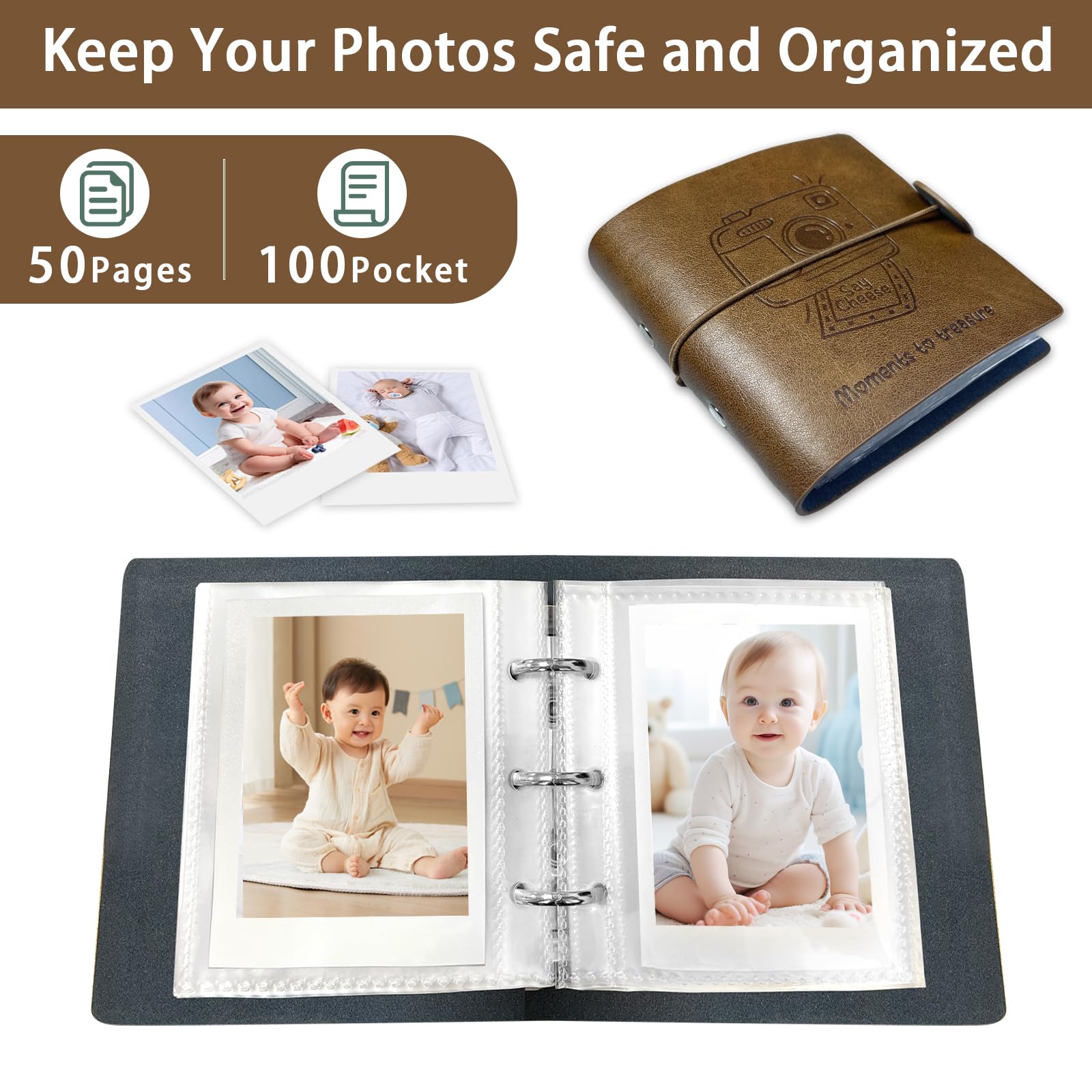 100 POCKETS FOR 2X3" PHOTOS:Store and display up to 100 precious mini prints (from 2x3 to 2.7x3.9 inches) in one organized small photo album. Each of the 50 thick pages holds two photos back-to-back, making it the ultimate pocket photo album and a perfect little photo album for Instax Mini, Polaroid, or Kodak mini pictures