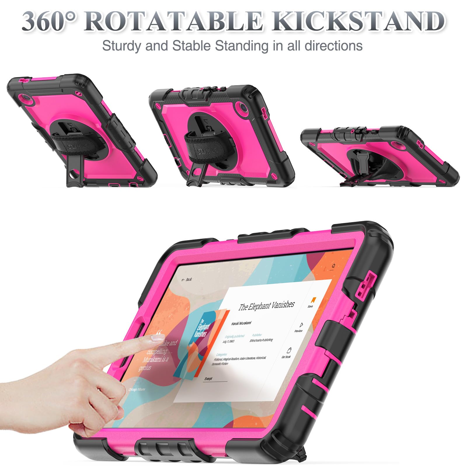 【Rotating Hand Strap / Stand】 Provide the securest protection and more convenience when you play or work with Galaxy Tab A9. Its 360° Rotating Kickstand, can provides 30°-45°-60° viewing/drawing/video/typing angles. With soft handle strap, easier to use your tablet at home or outdoor working, studying, gaming for kids &adults