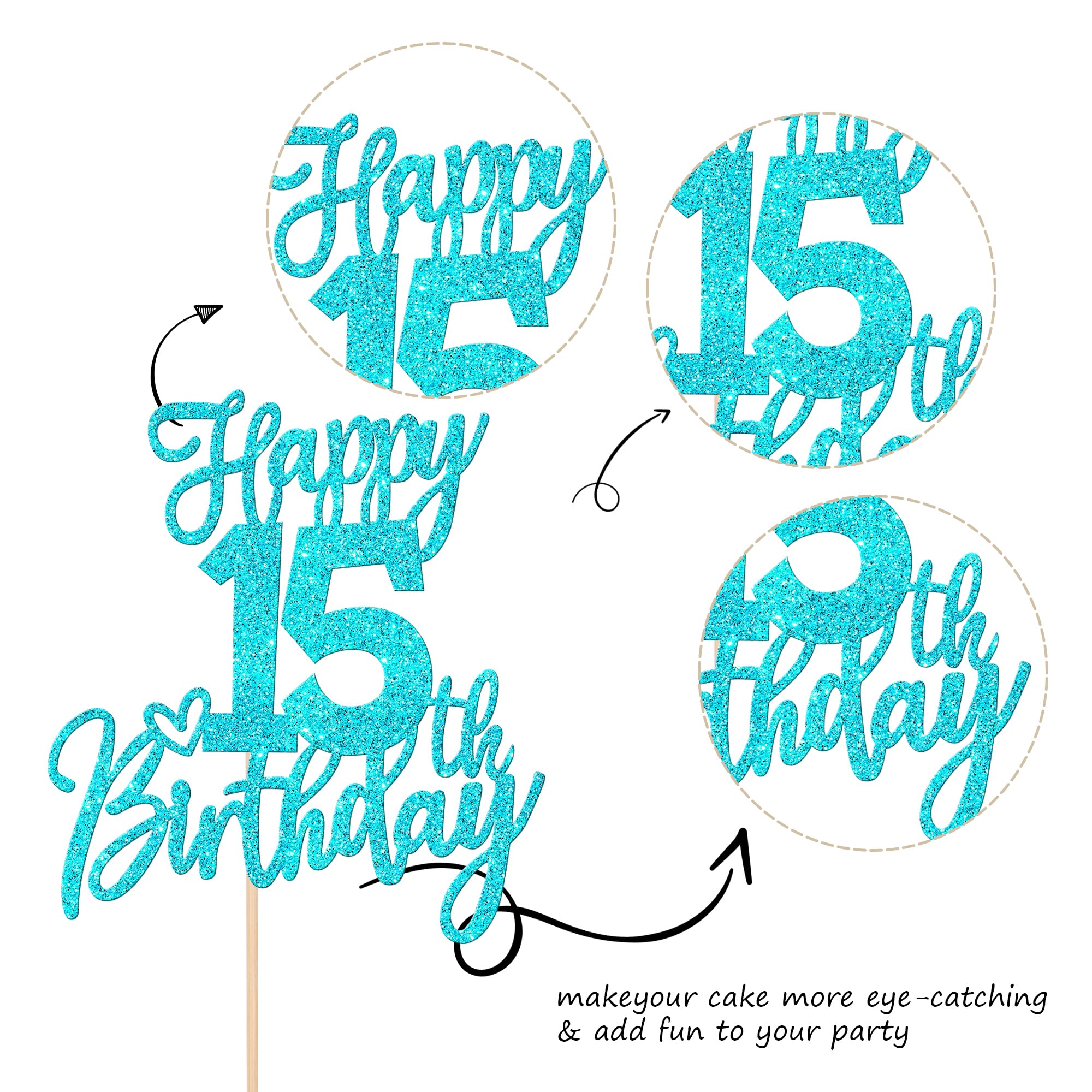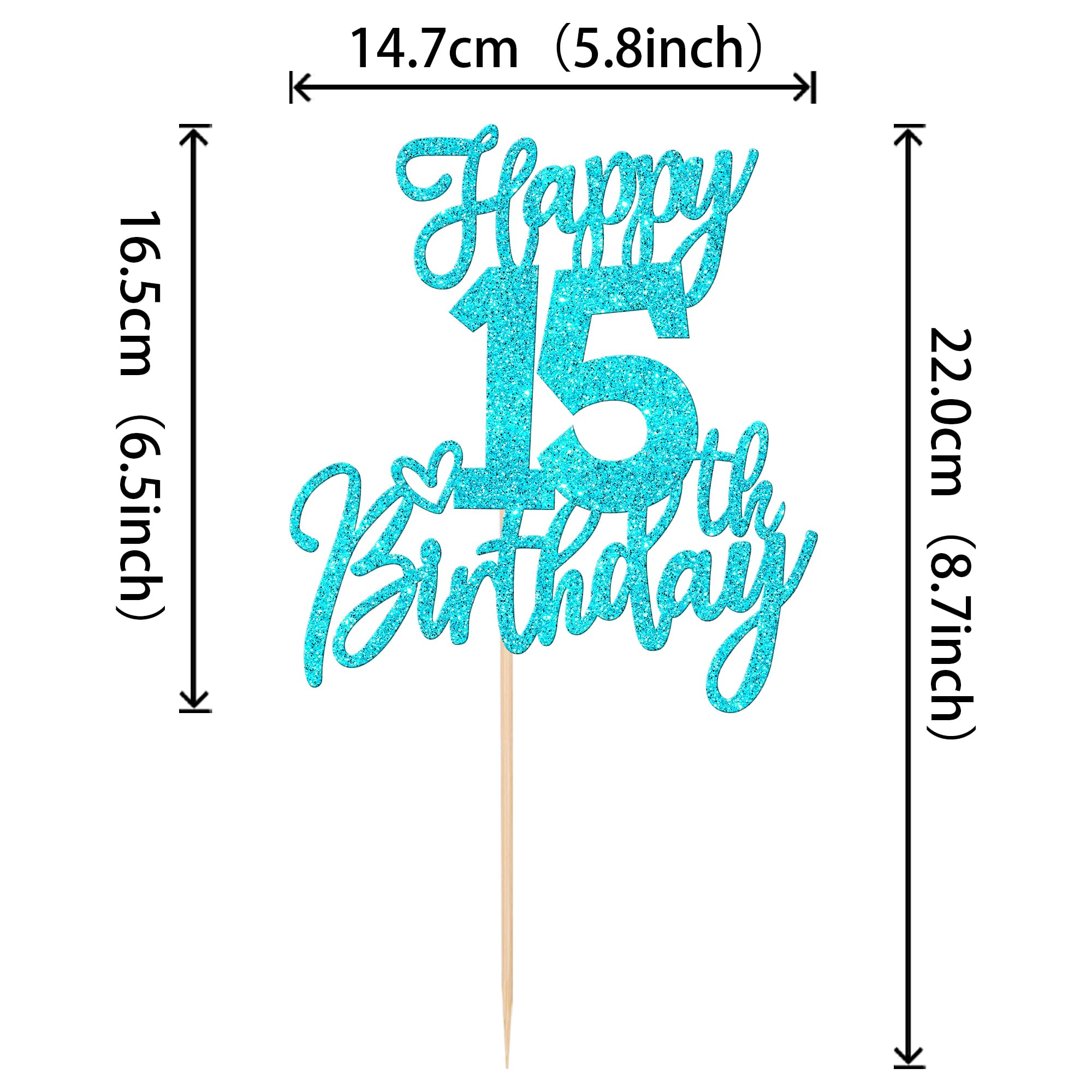 Happy 15th Birthday Cake Topper for Happy 15th Birthday Theme Party Cake Decorations Supplies Perfect for happy 15th birthday theme party,cheers to 15 years theme party,15th anniversary theme party cake decorations supplies. Pack of 1 pcs. The size is W 5.8 inch * H 8.7 inch / W 14.7 cm * H 22 cm ( with stick ) Made of high quality paper card stock and food grade sticks,thick and sturdy. This cake topper is one side glitter, another side is white, and this is intended for decoration only, please do not put them in oven or microwave. If the item you received has any defects, please contact us for refund.we will deal with it within 24 hours.