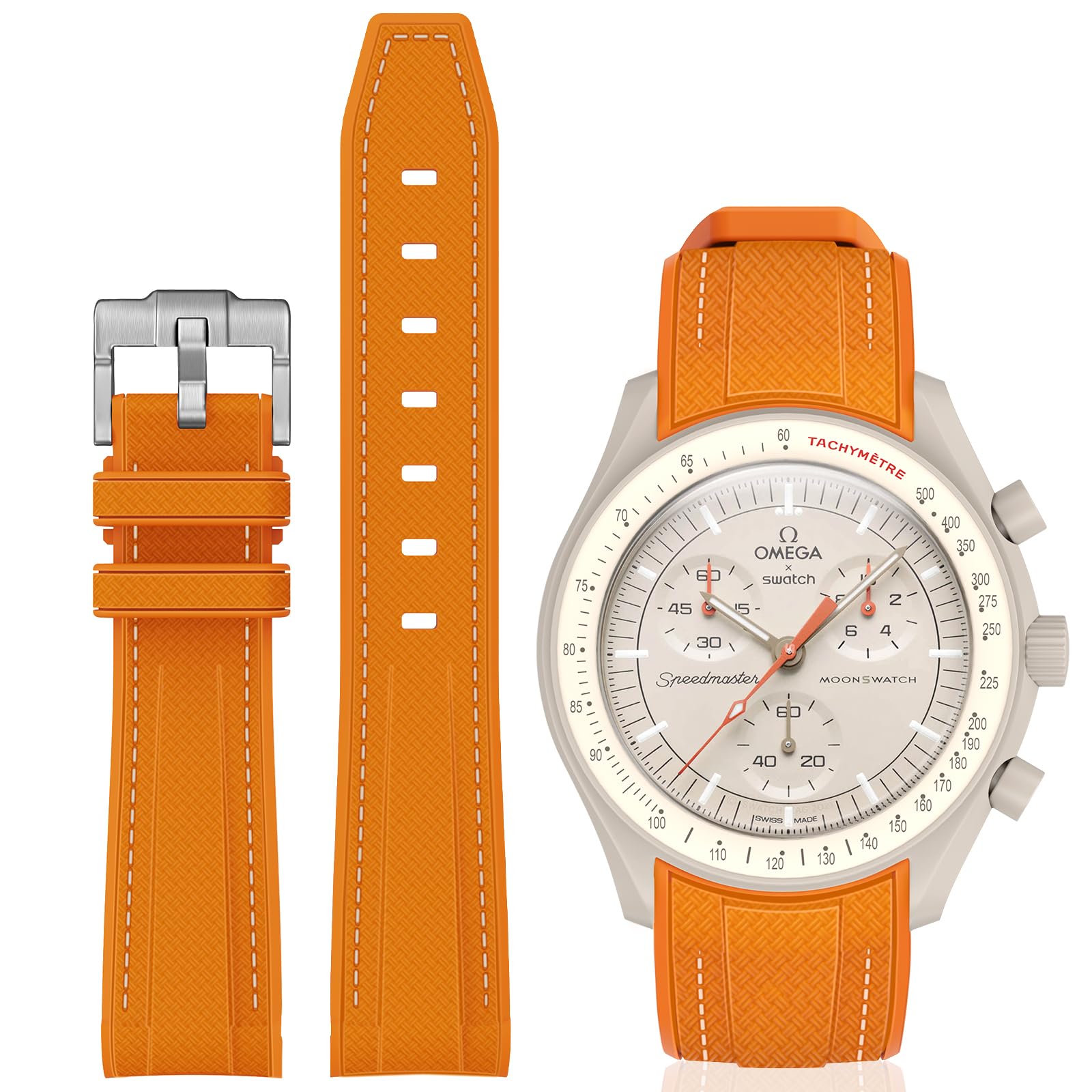【High-Quality Materials】Crafted with precision and durability in mind, our watch strap for moonswatch is made from premium-grade silicone and stianless buckle materials. These rubber materials ensure a comfortable fit, water resistance, and long-lasting performance. Whether you prefer an Omega Seamaster rubber strap, an Omega Speedmaster strap, or an Omega Swatch band, our selection guarantees exceptional quality.