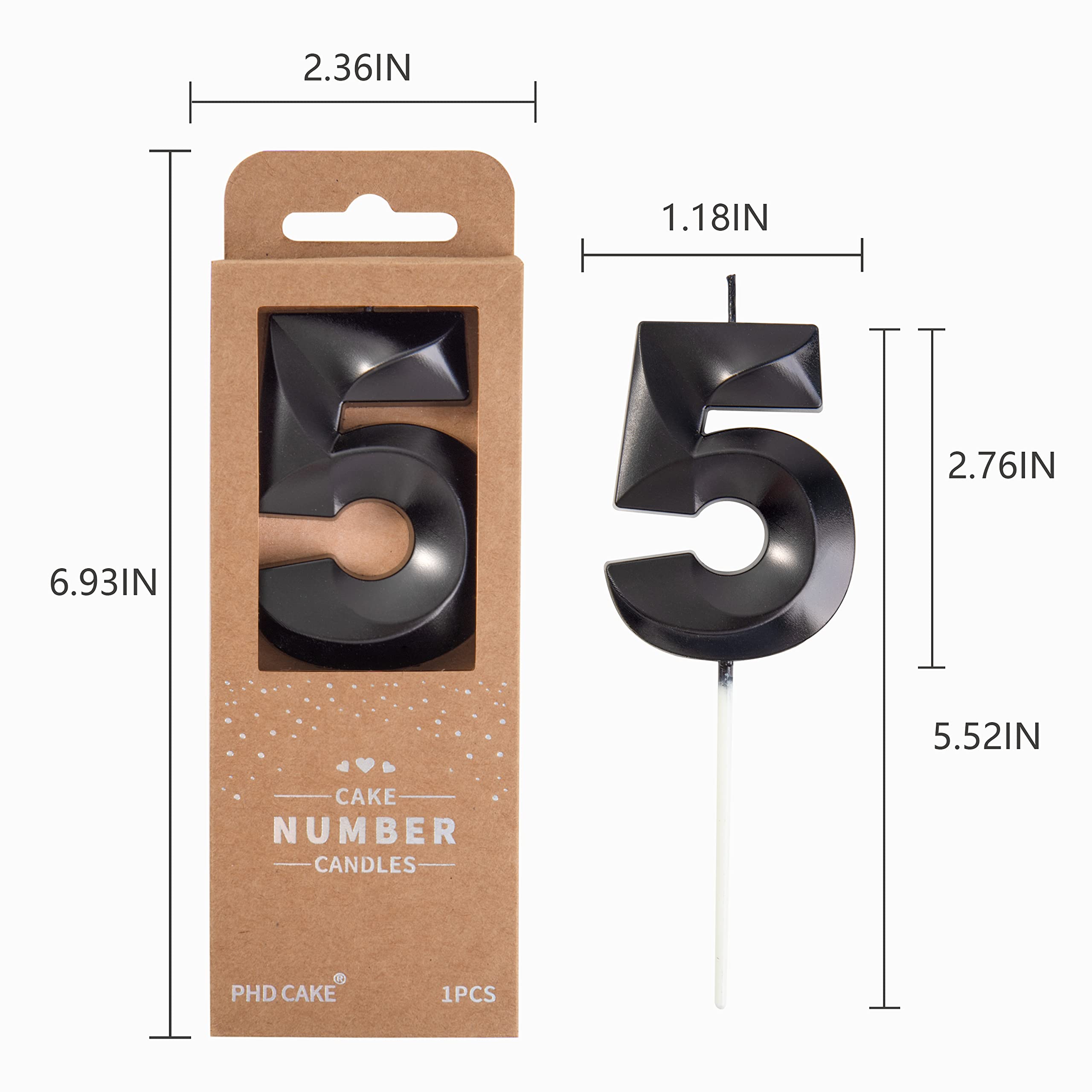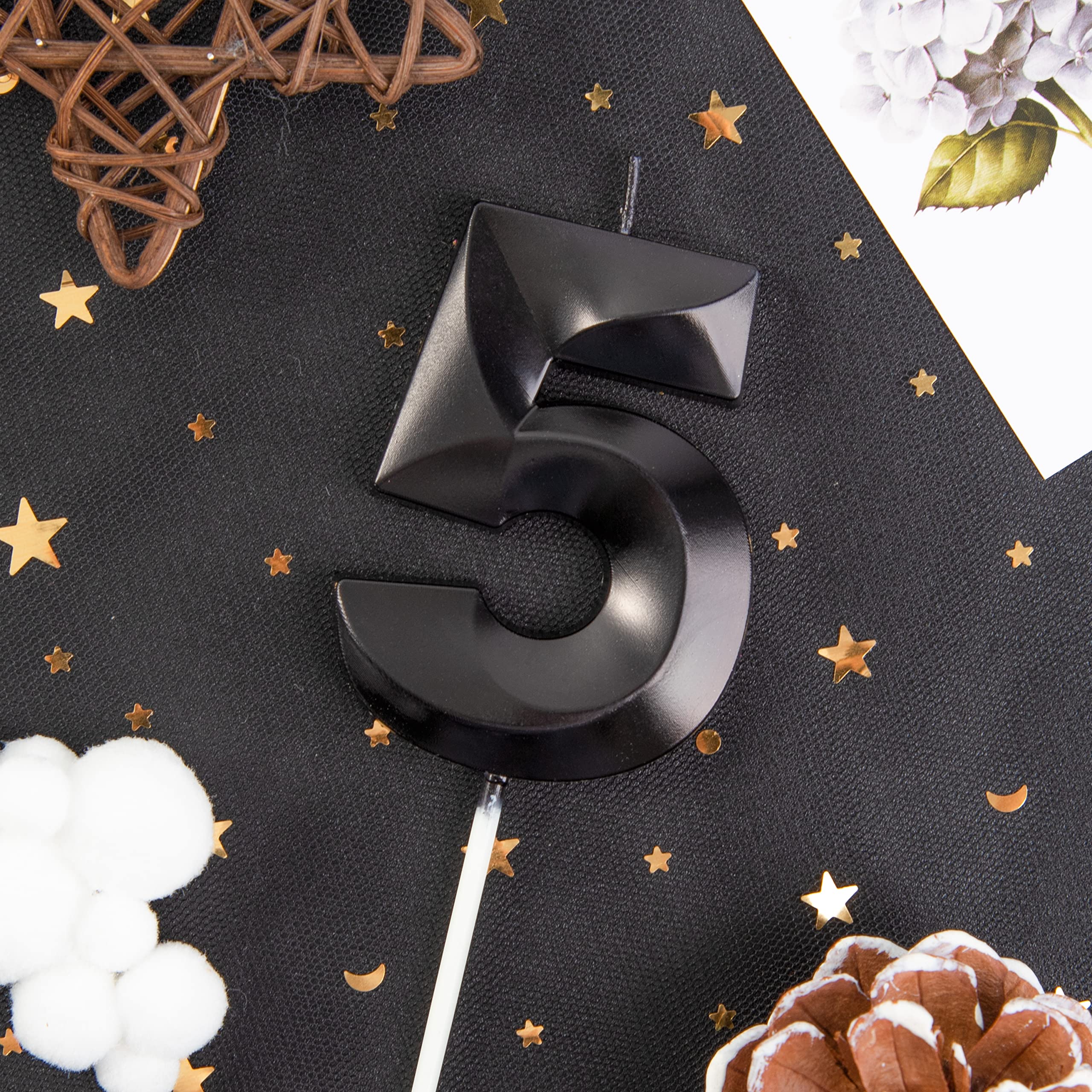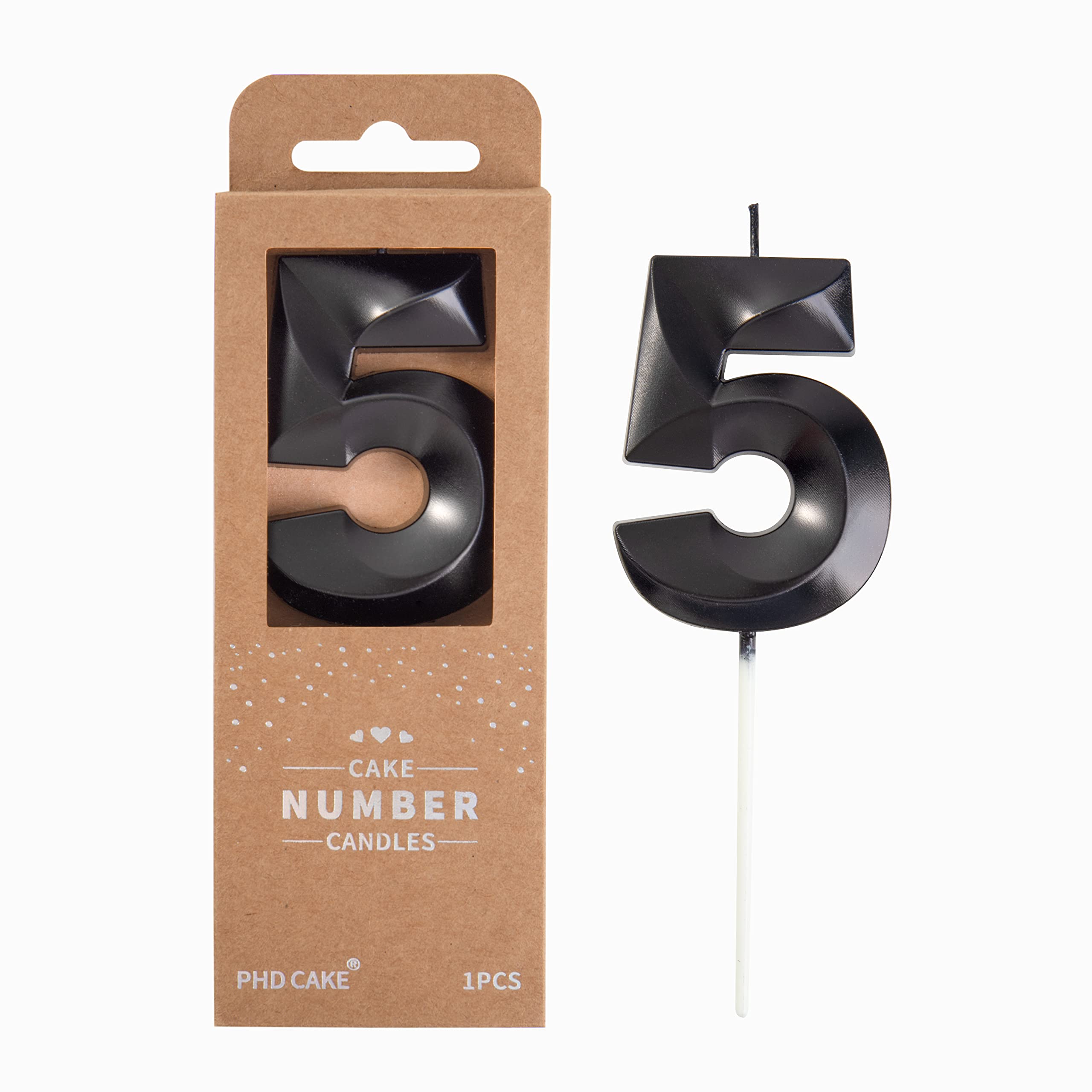 New: 2.76 Inch Large Diamond Black 5 Number Birthday Candle designed to make your cake and birthday a unique and truly inspiring event.