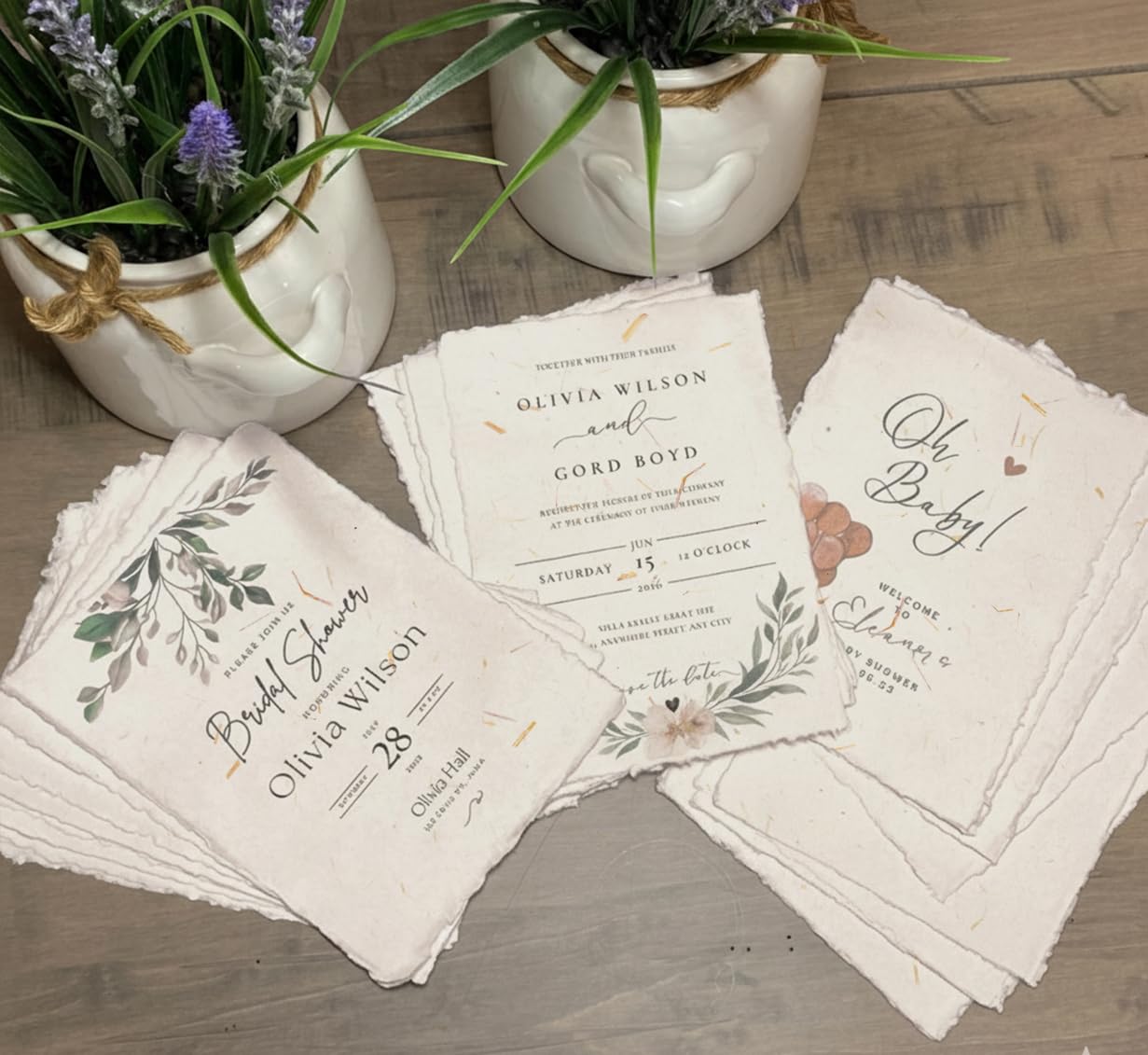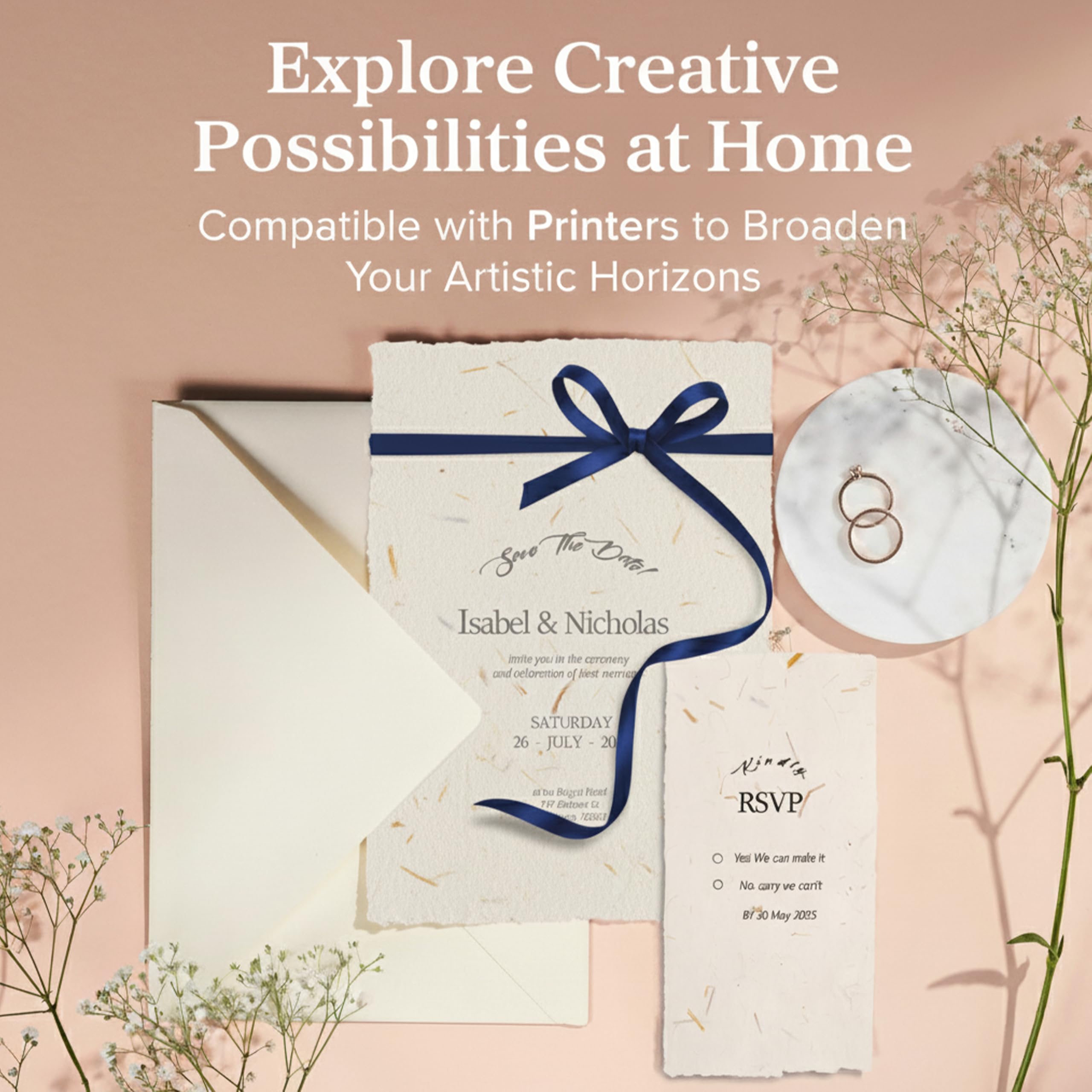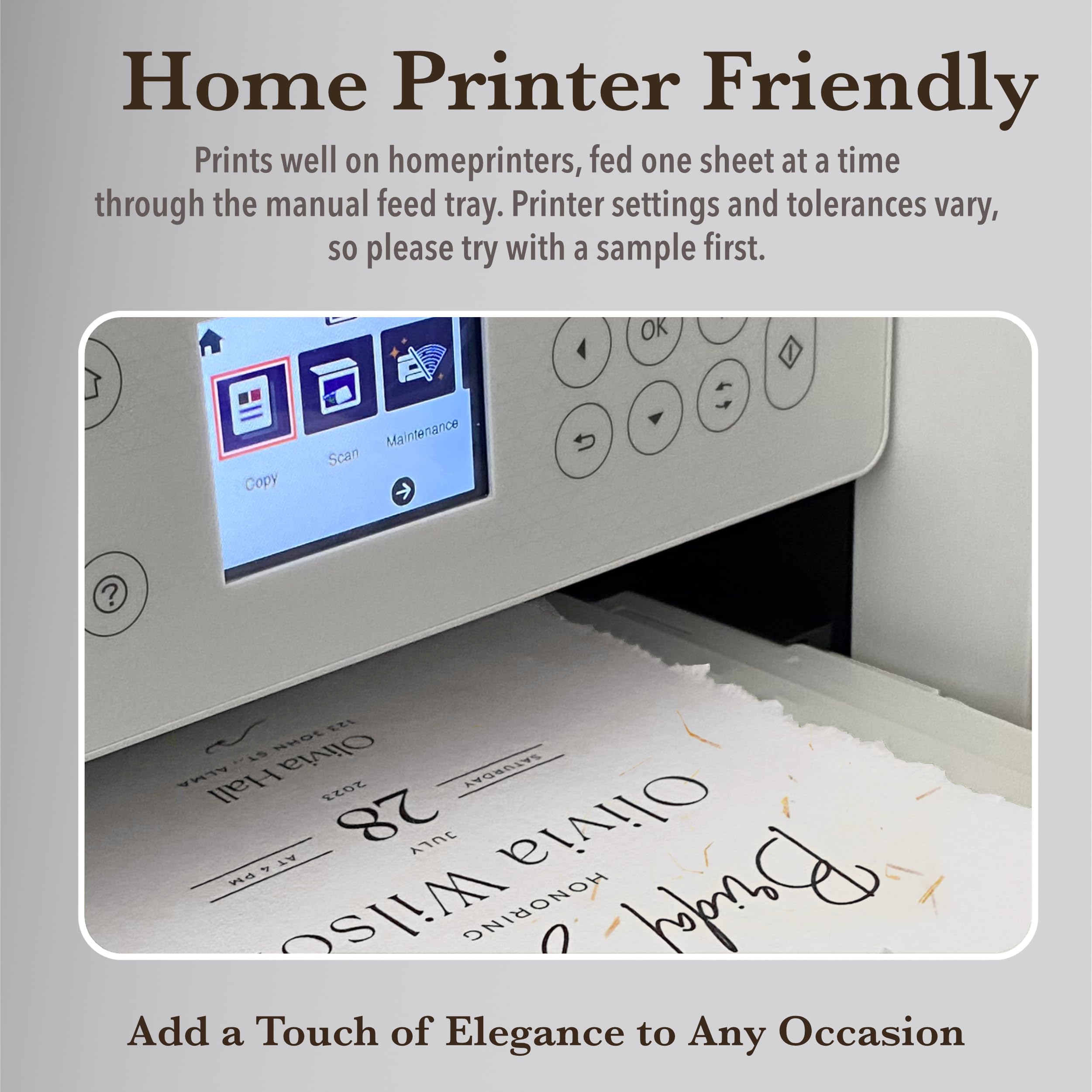 [Home Printer Friendly]: Our deckled edge 150gsm paper is compatible with home printers, offering endless possibilities to make a lasting impression with creations such as menus, wedding invitations, cards, or even books. For best results, feed one sheet at a time through the manual feed tray. As printer settings and tolerances can vary, we recommend testing with a sample first to ensure optimal print quality. 50 sheets of 10.5 x 15 cm / 4" x 6", A6 size paper