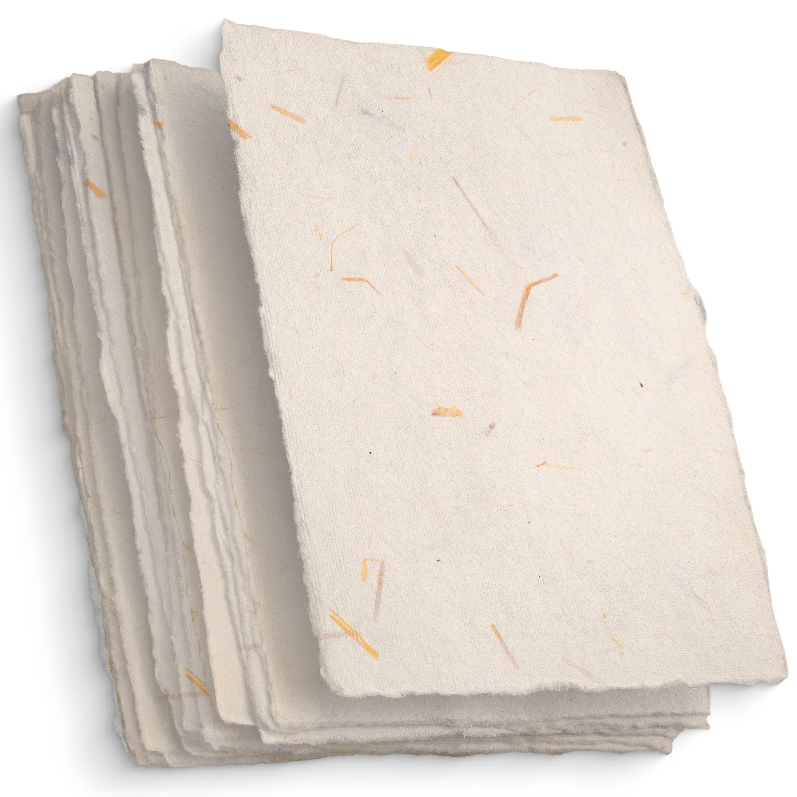 [Artisan Crafted]: Experience the unmatched craftsmanship of our 50-pack handmade cotton deckled edge paper, expertly produced by artisans using time-honored techniques passed down through generations since 14th-century India. This luxurious, sun-dried, cold-pressed 150gsm blank paper is externally treated with a plant-based sizing solution, making it ideal for bringing your creative visions to life—whether with watercolor, acrylics, charcoal, ink, or colored pencils