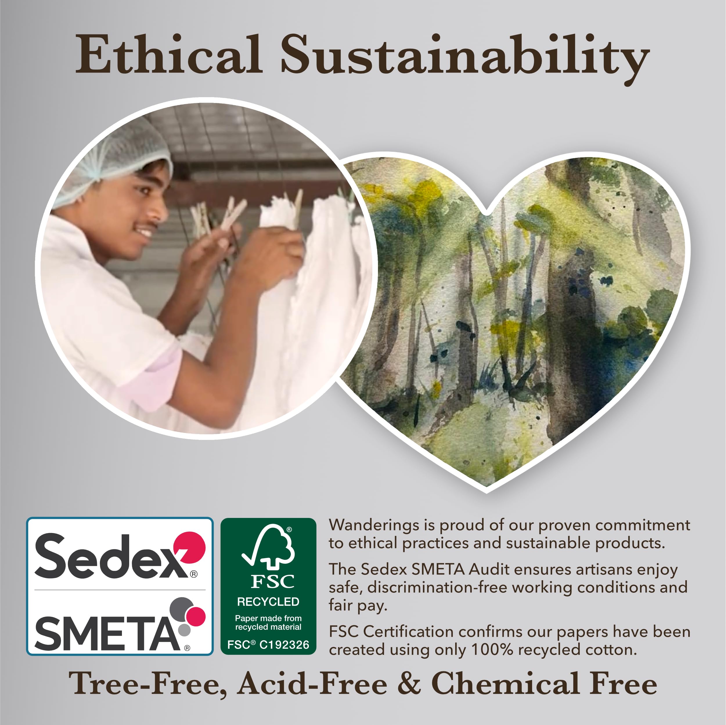 [Practice Art Sustainably]: Create with a clear conscience using our 100% recycled cotton paper, crafted from responsibly sourced remnants of the local garment industry. Made tree-free, acid-free, and chemical-free through sustainable production processes, our paper is FSC Certified, ensuring that your art supports a healthier planet