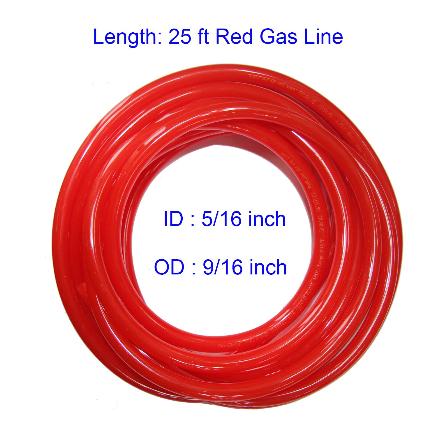 Red Gas Hose ID 5/16 inch, OD 7/16 inch, Length 25ft;