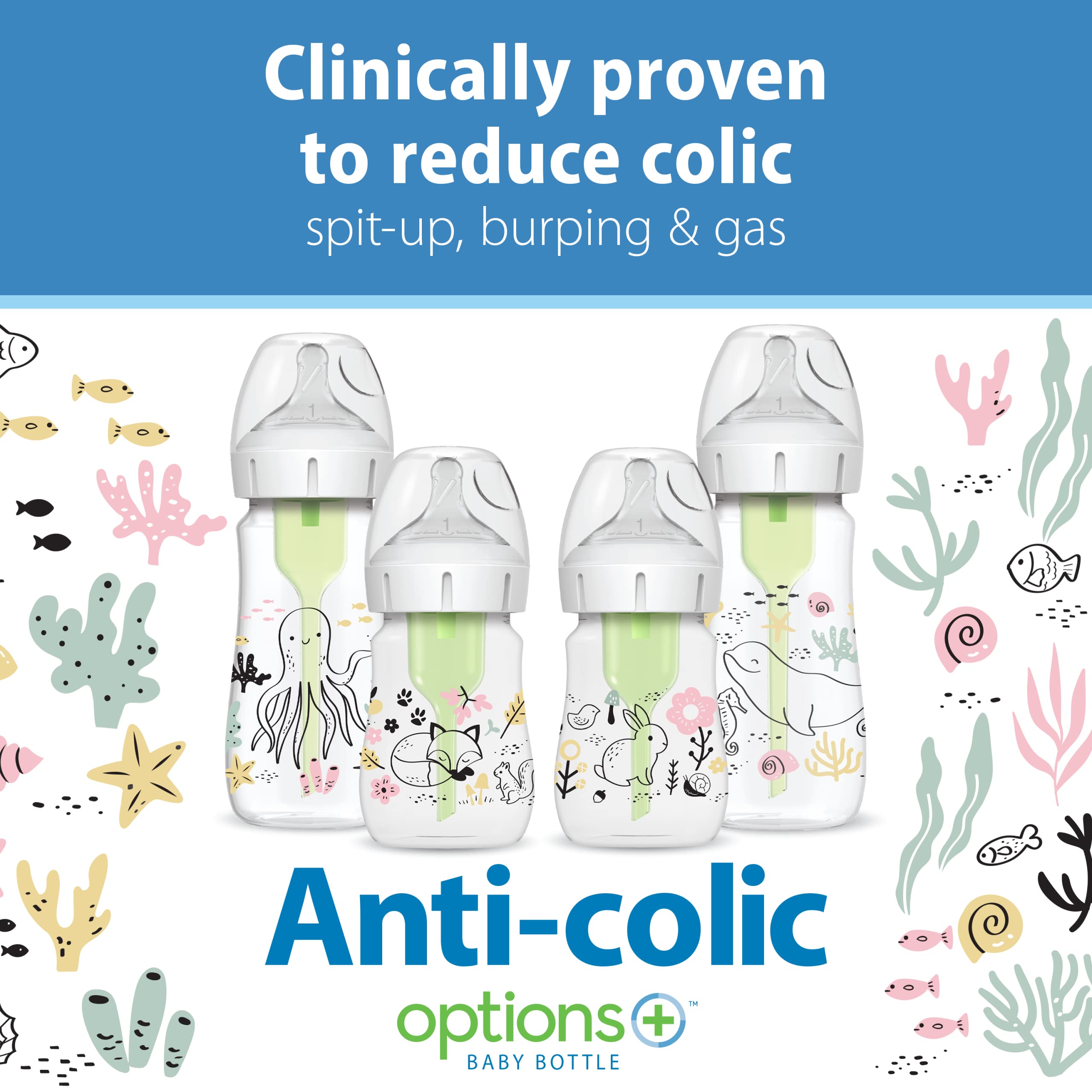 ANTI-COLIC BABY BOTTLE. Anti-Colic internal vent system is clinically proven to reduce colic. Decreases spit-up, burping and gas.