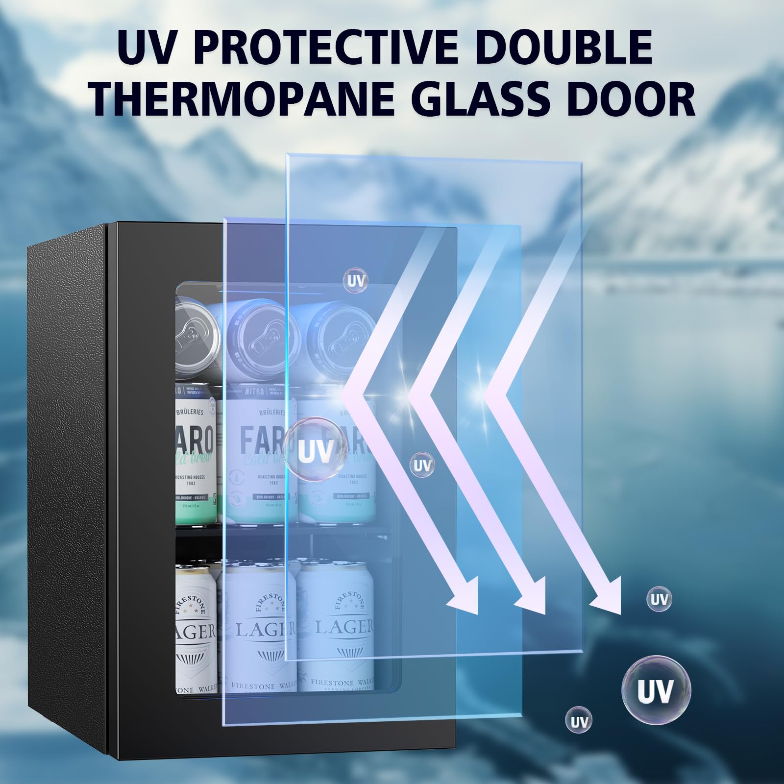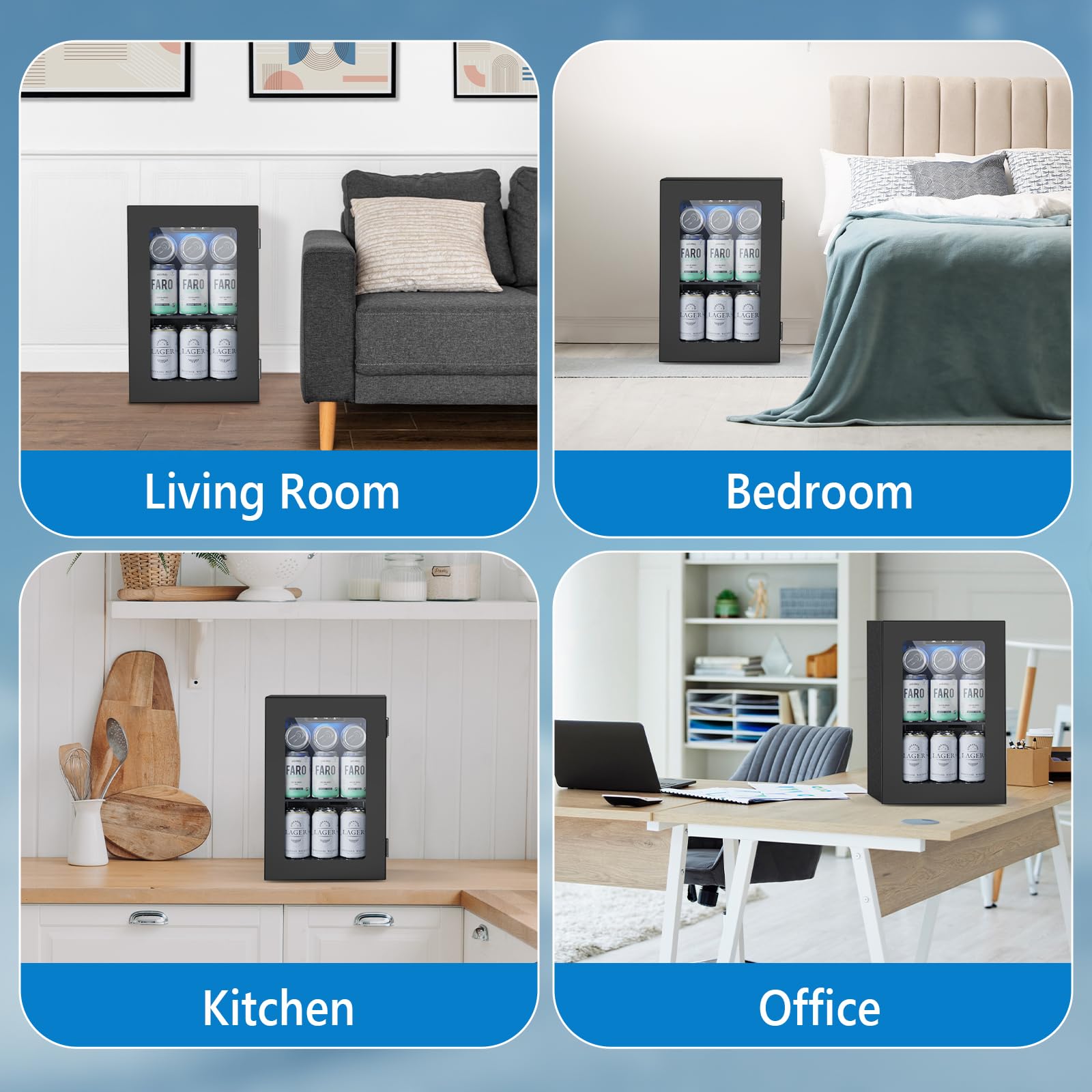 【Spacious Yet Compact Design】Mini fridge holds up to 24 standard cans in a sleek, space-saving footprint (approx. 0.6 cu.ft.), making it mini fridge for bedroom, home bars, dorm rooms, offices, or small kitchens without sacrificing storage capacity.