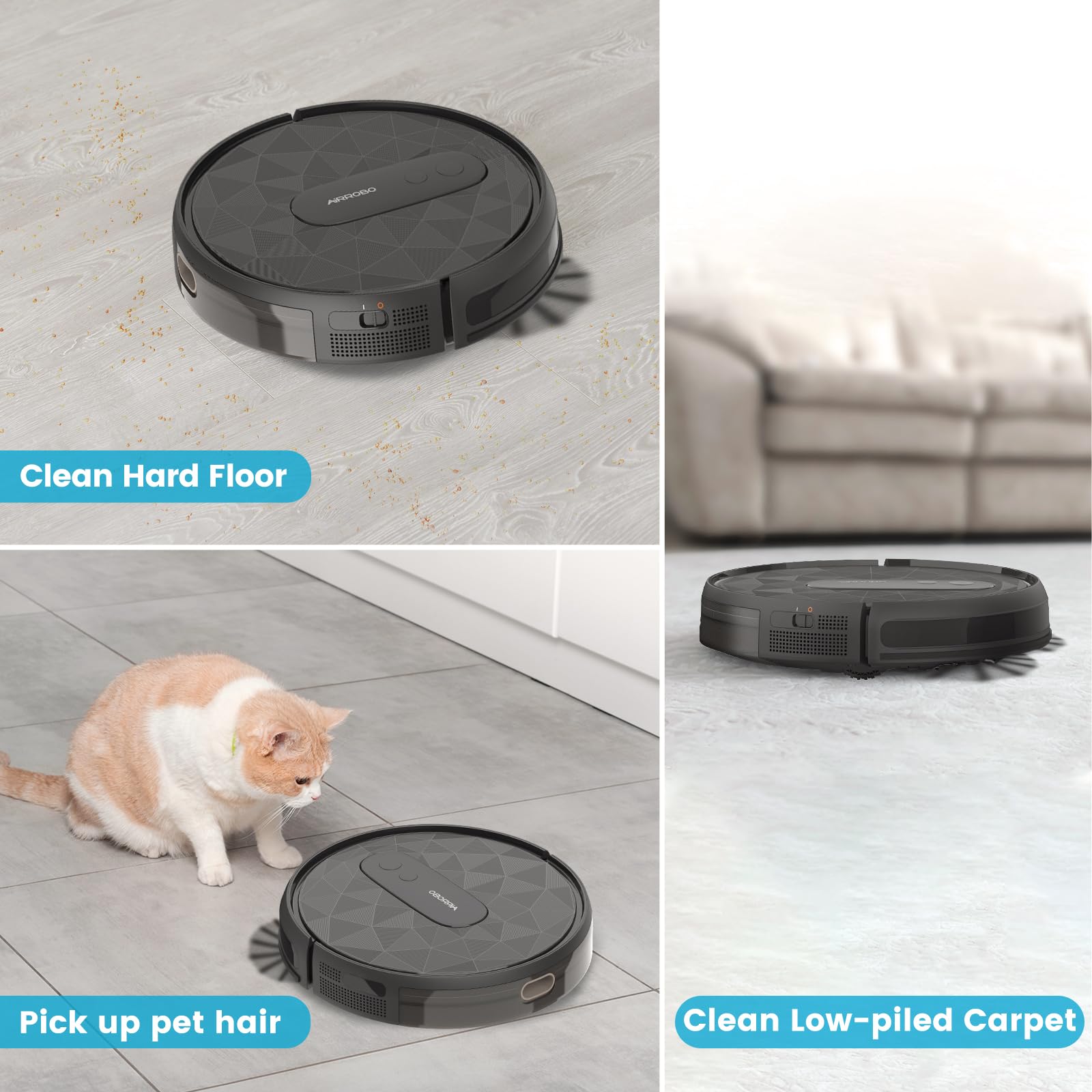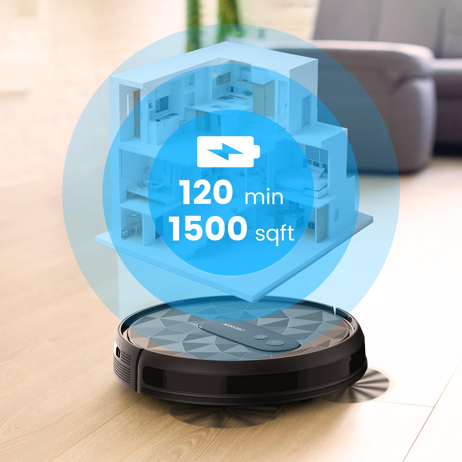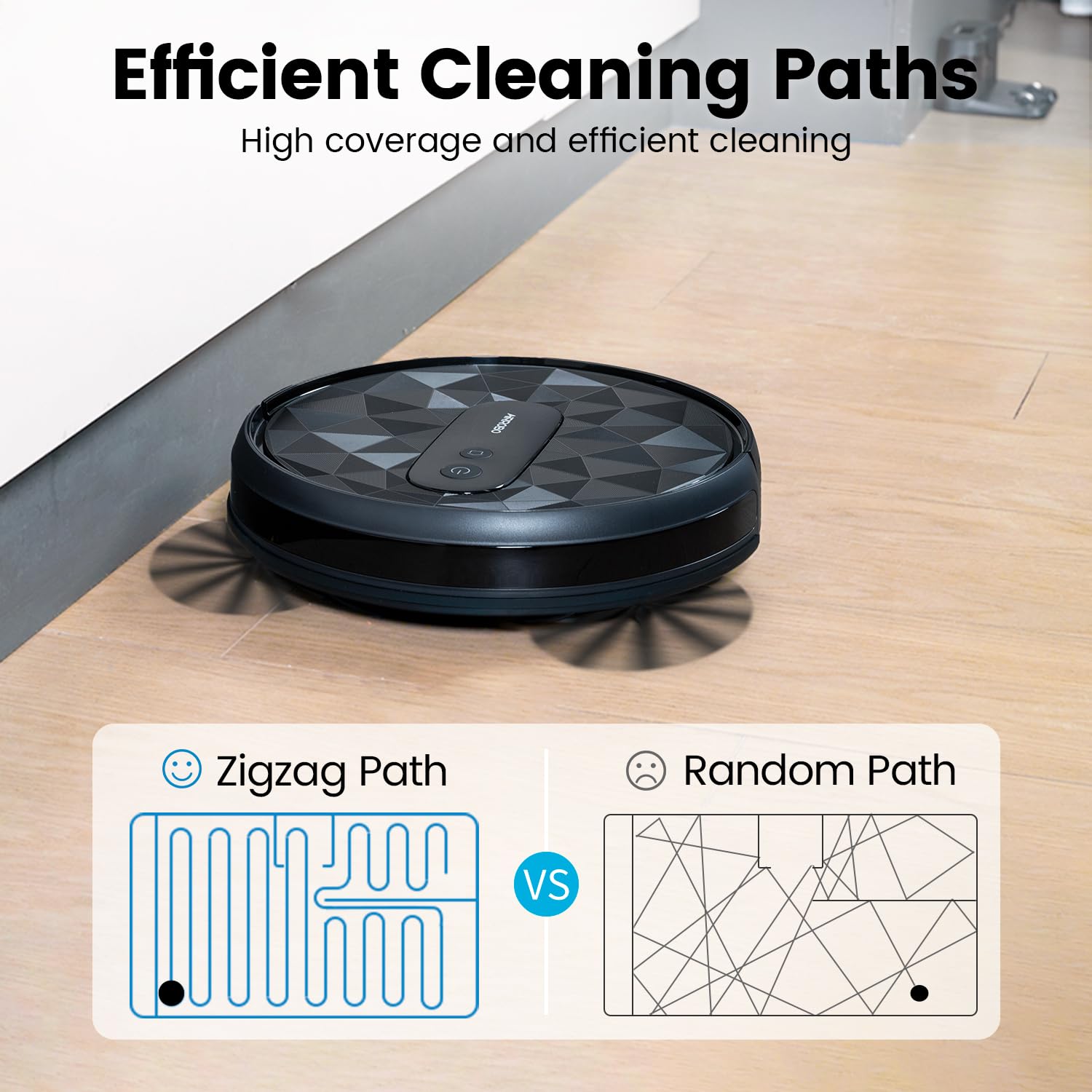 SMART NAVIGATION & 120-MINUTE RUN TIME: Powered by smart navigation and a systematic zigzag cleaning path, this robot vacuum ensures it covers every inch of your floors. With up to 120 minutes of runtime and an auto-recharge feature, it cleans nonstop until the job is done