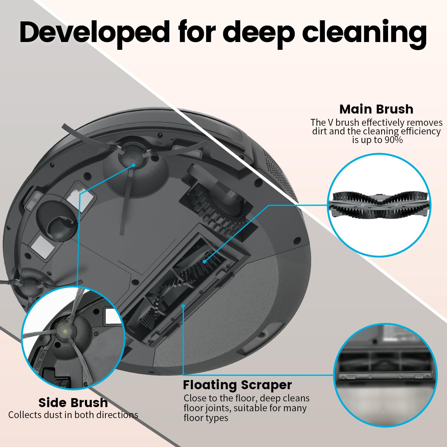 ANTI-COLLISION & ANTI-DROP PROTECTION: Advanced sensors help it smoothly navigate around furniture and avoid stairs, offering worry-free, efficient cleaning that’s safe for every home