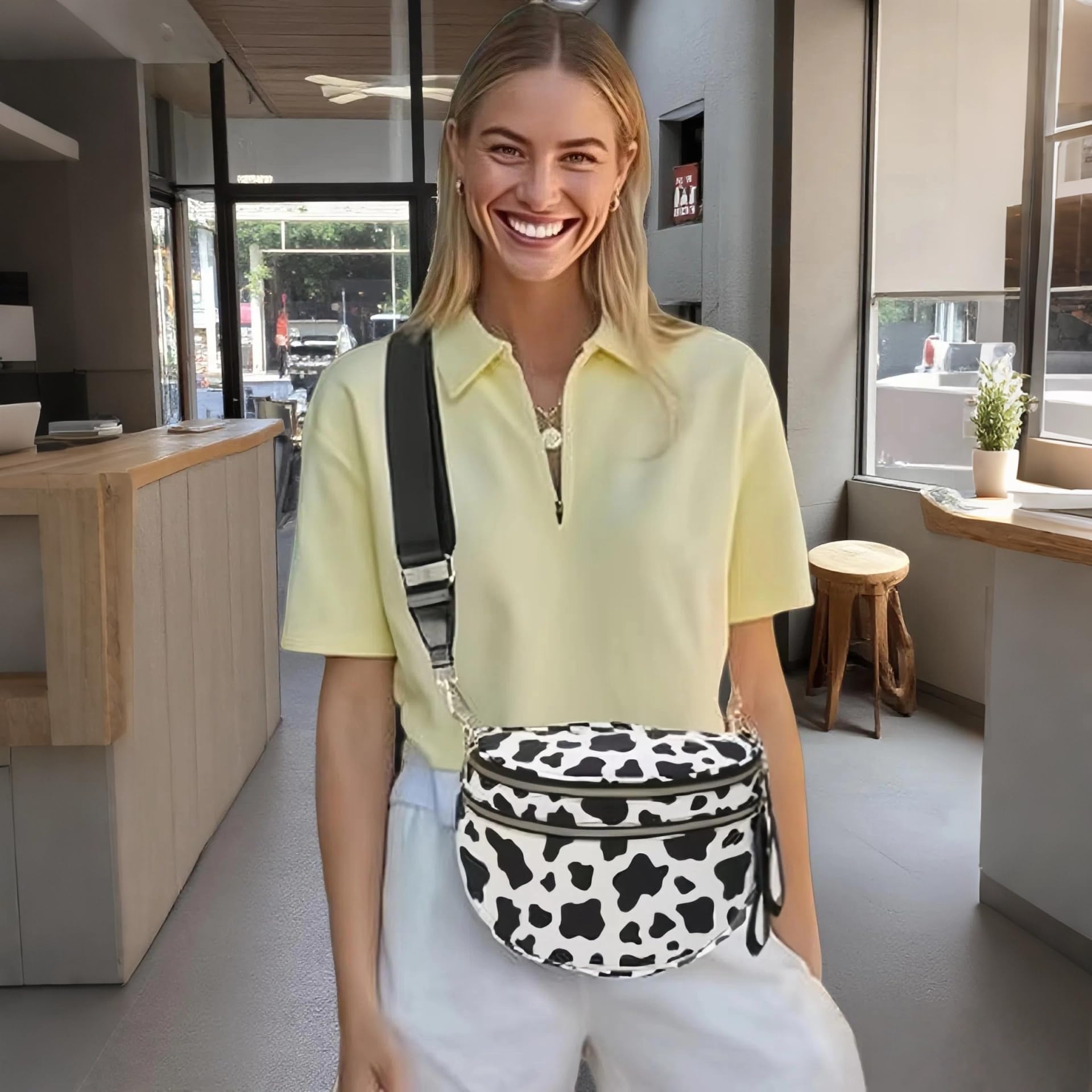 【Smart and Organized Design】Featuring a double zipper system with two separate compartments, this women's bum bag helps you keep your items neatly arranged. It also includes an interior hidden pocket for safeguarding valuables and a back zippered pocket for quick access to your cell phone while on the go.