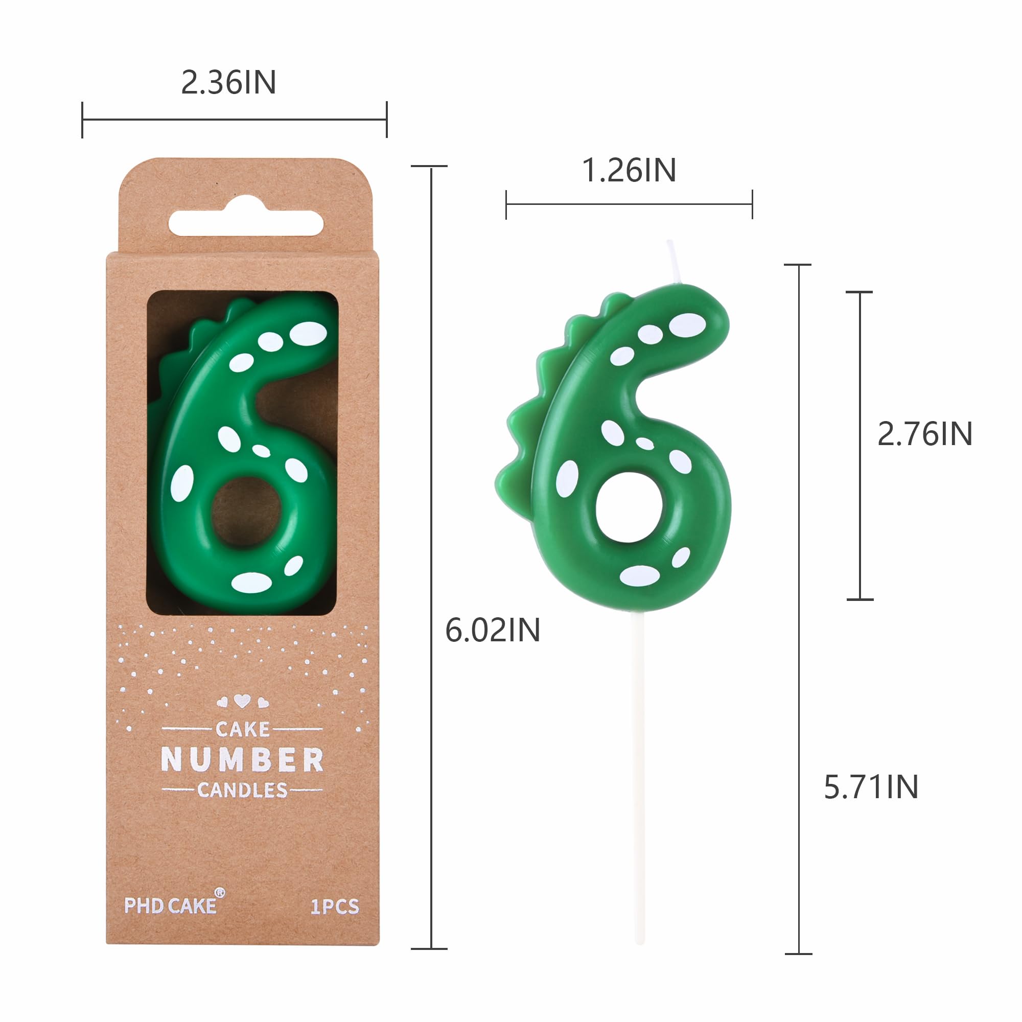 New: 2.76 Inch Large Green Dinosaur 6 Number Birthday Candle designed to make your cake and birthday a unique and truly inspiring event.