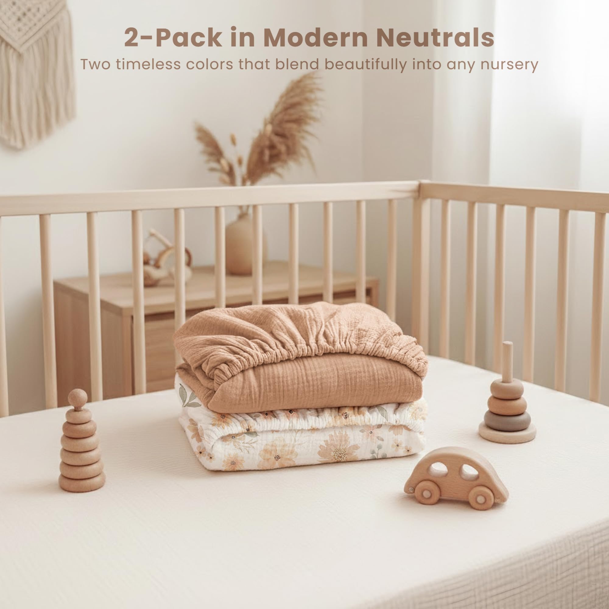 Cute Design: Our muslin crib sheet adorned have 2 PCS different color prints will make your baby look more adorable, suitable for both boys and girls! Lay your baby down to sleep in a soft and breathable crib sheet