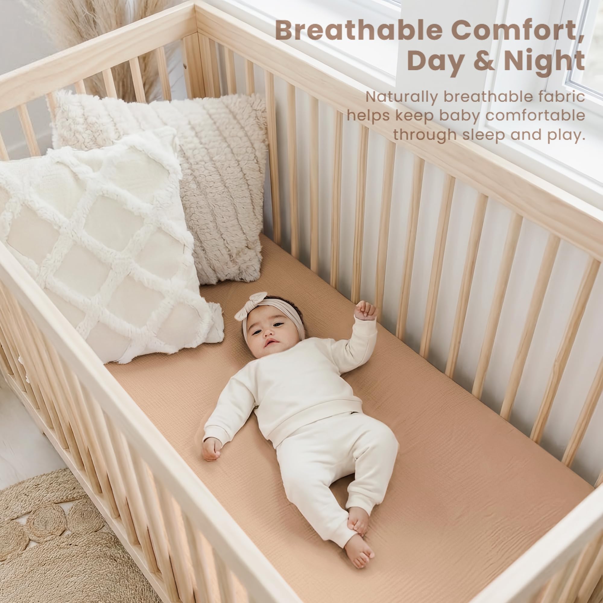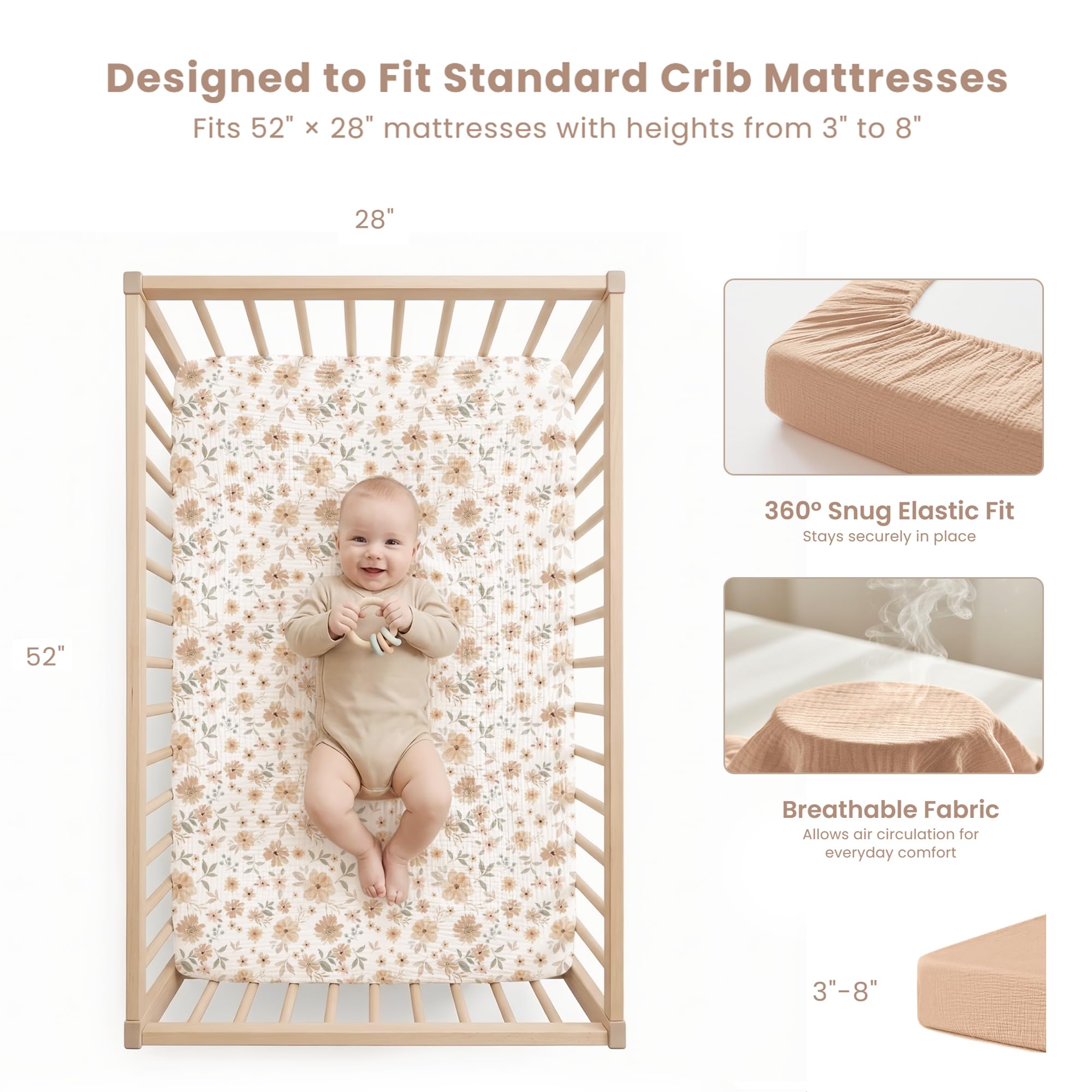 Super Soft and Breathable: These muslin crib sheets are made of 100% cotton (Muslin) for breathable with skin-friendly soft touch and retain its color after washed for several times. Keep your baby super comfortable and soft with this crib sheet