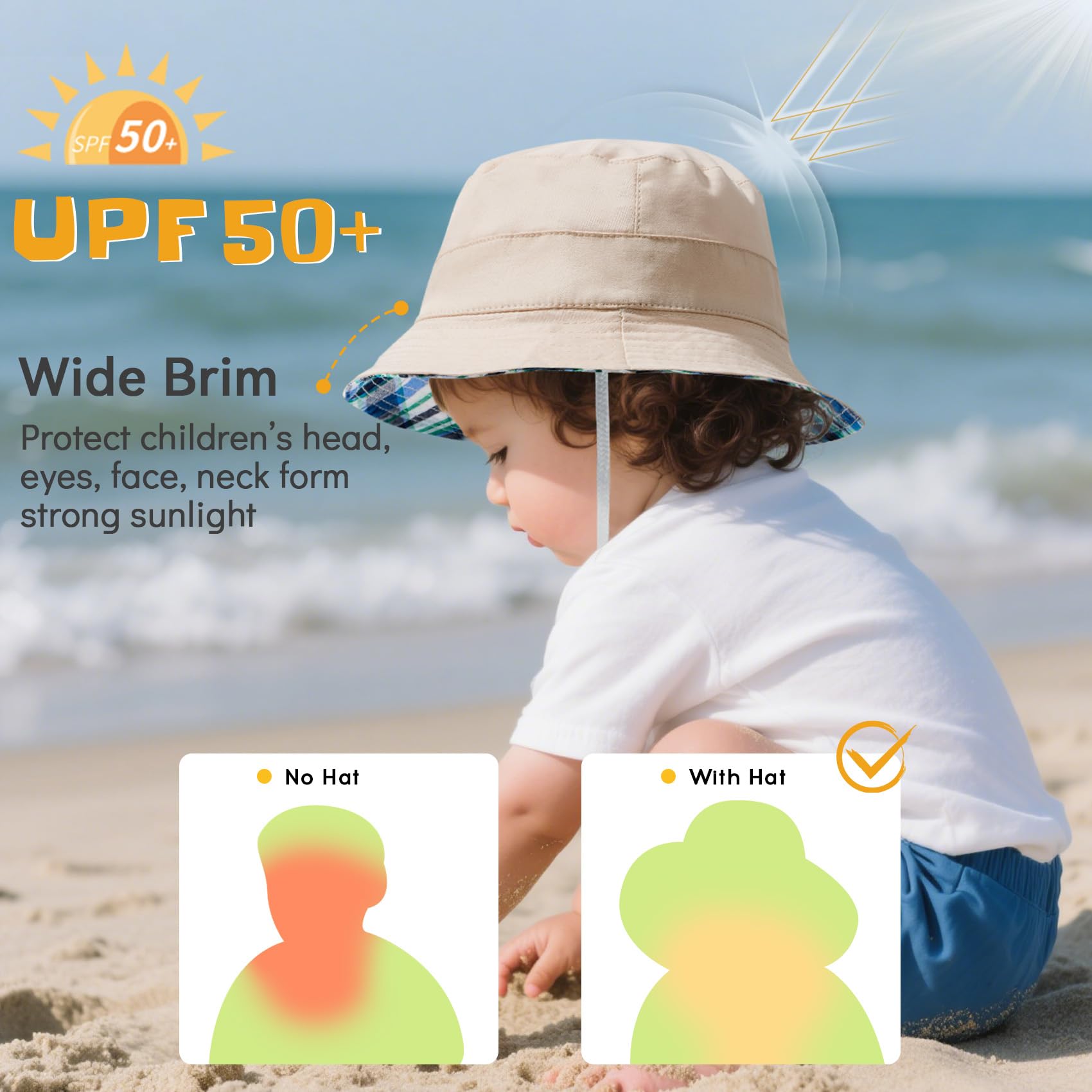 Design: kids bucket hat is easy to wear and pair with other clothes. Wide brim protects & shields eyes from the sun, chin strap and adjustable toggle at back