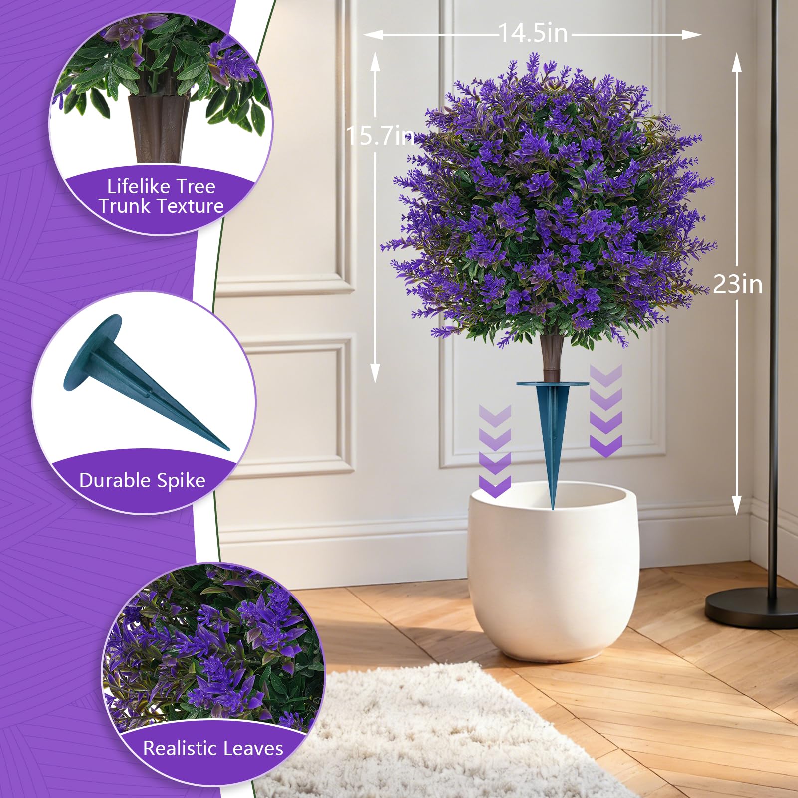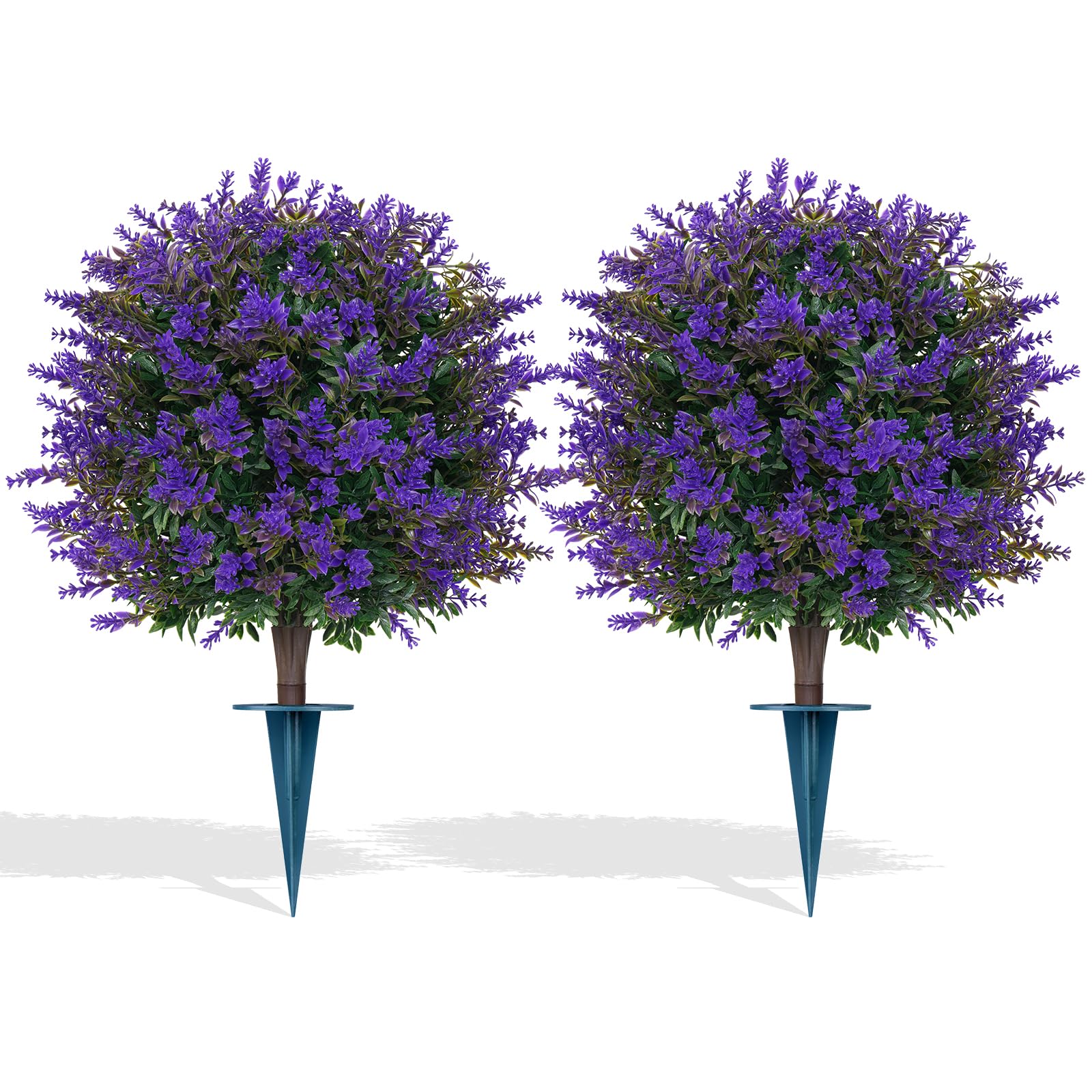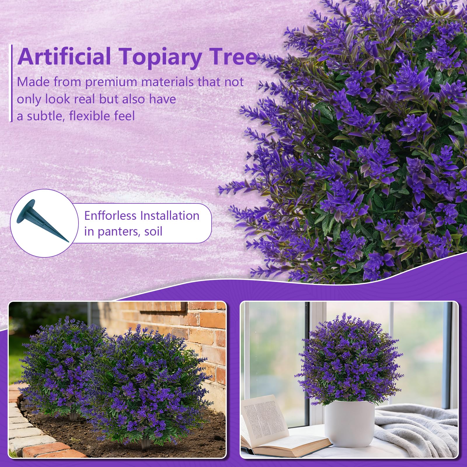 Perfect Lifelike Plant: Each set includes two crafted lavender topiary balls. Total dimensions (including stakes): 23"H x 14.5"W. Its realistic scale fits seamlessly on porches, in planters, or indoors.