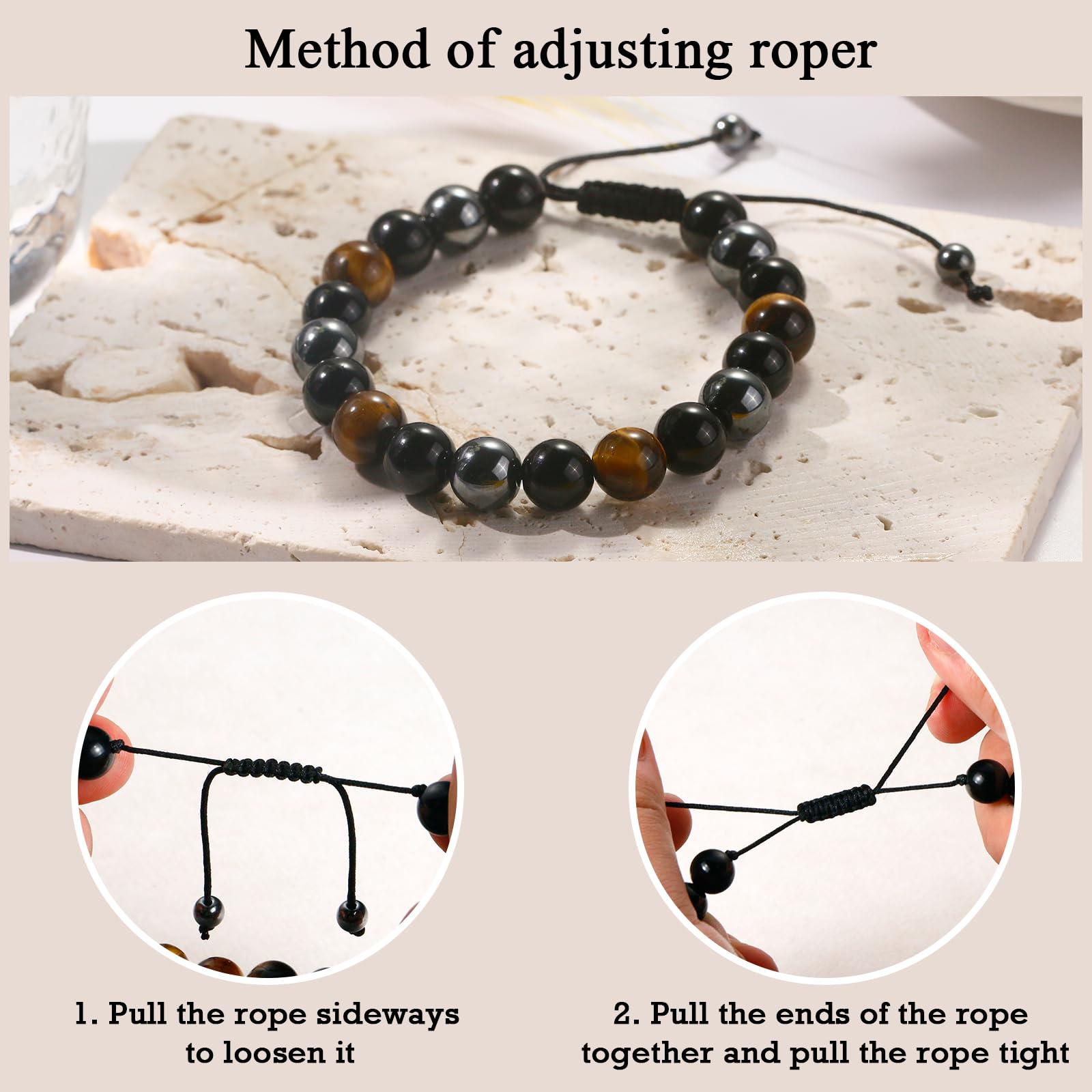 Triple Protection Bracelet: This bracelet is made of natural high quality stone beads carefully selected by our veteran craftsmen, picking tiger's eye stone that carries great power for men's brothers, hematite that maintains magnetic mind balance and obsidian that brings good luck for triple protection, which can help your brother to stay calm and calm when encountering difficulties, turning danger into safety and bringing good luck. Best brother inspirational gift