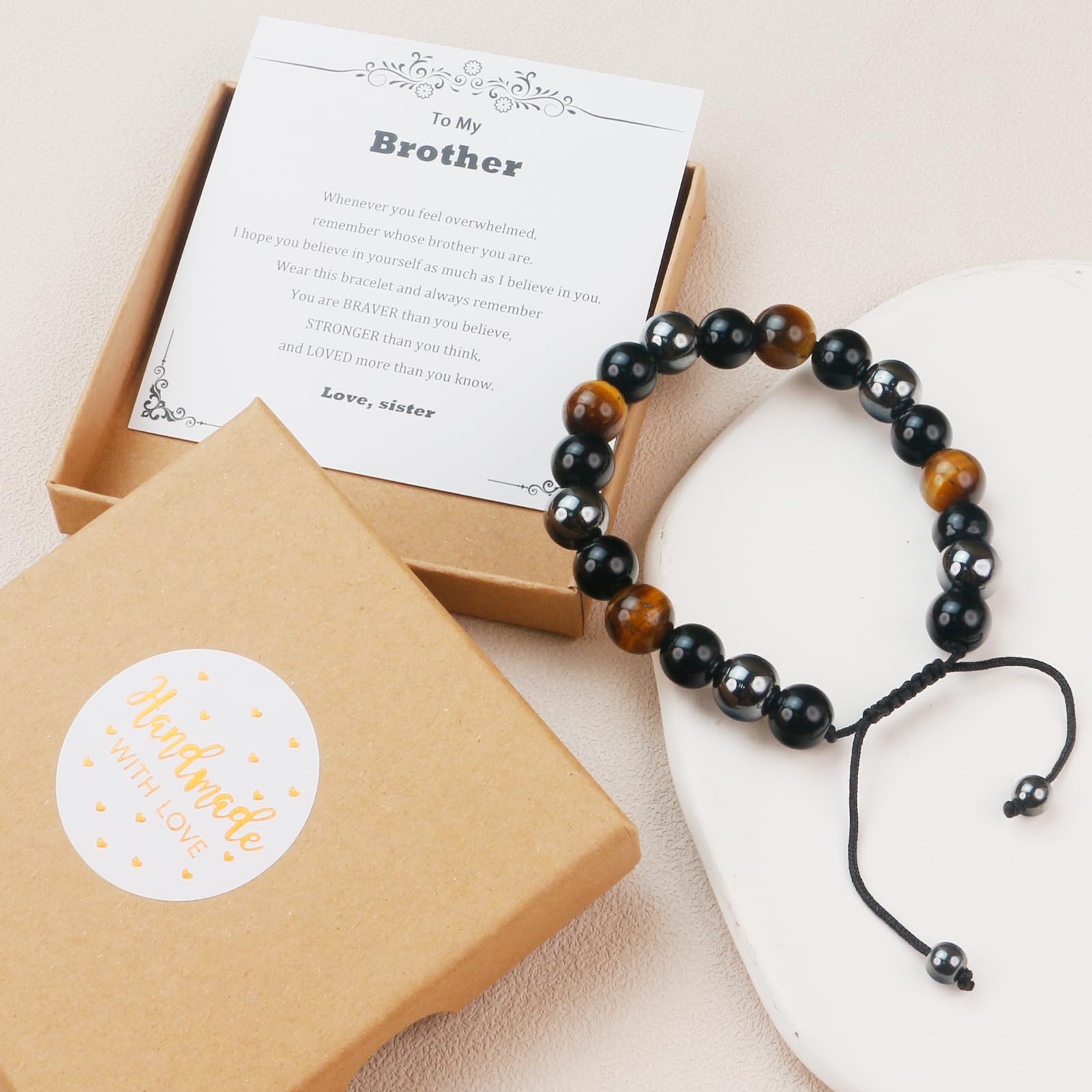 Cool Gift for Brother: "You are braver than you believe and stronger than you think". This is the most sincere blessing to brother from sister.The brother beaded bracelet combines tiger's eye, hematite, and obsidian, which can bring brother strong strength, faith, and good luck. Sister sent to big brother little brother gifts for Christmas birthday, unique father's day gift for brother from sister to brother adult graduation gift