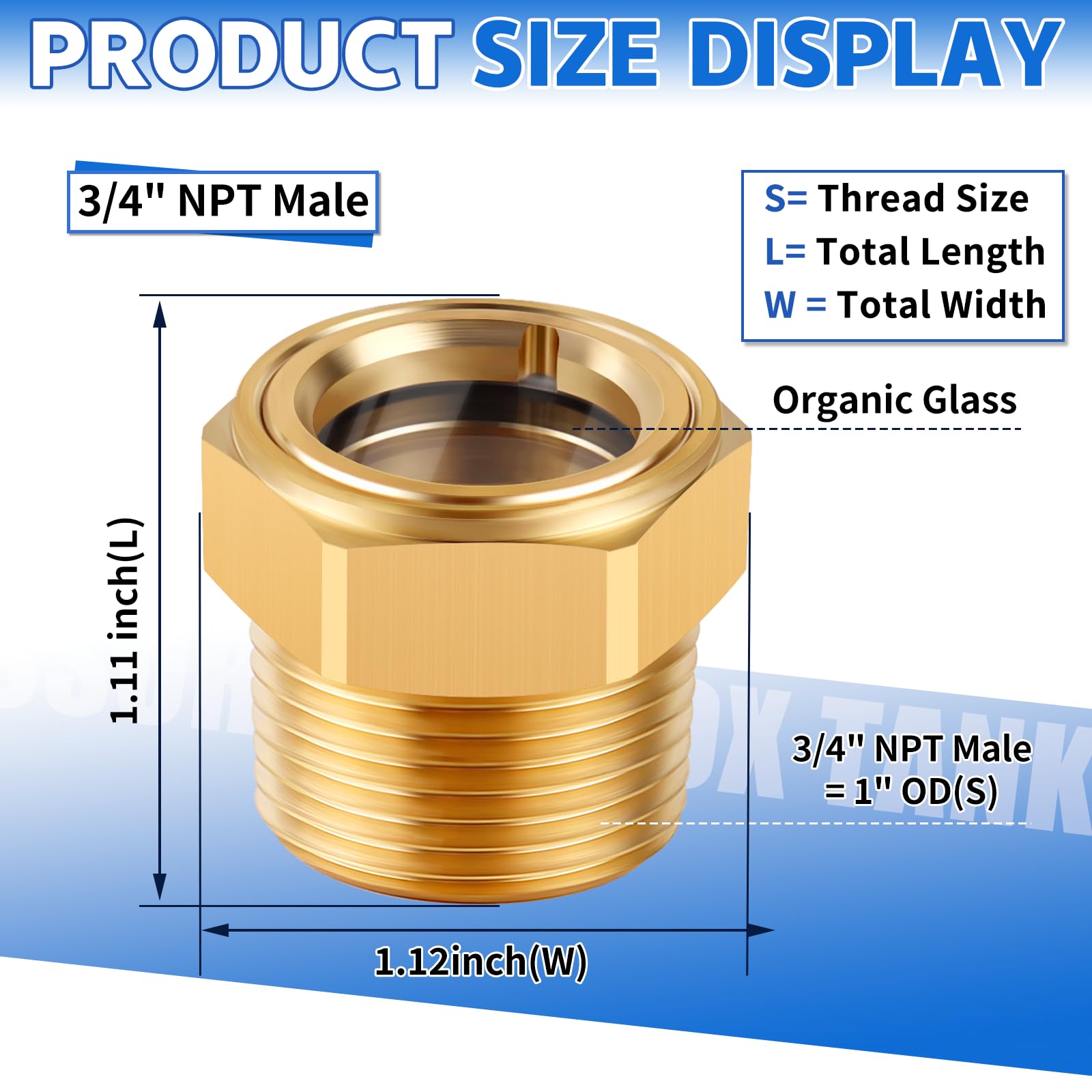 【Material】The 3/4 NPT hydraulic tank sight glass is made of solid brass, the glass is borosilicate glass, The o-ring inside the oil sight glass is NBR , which is not easy to wear and burst compares to plastic material. It can work in different environment.