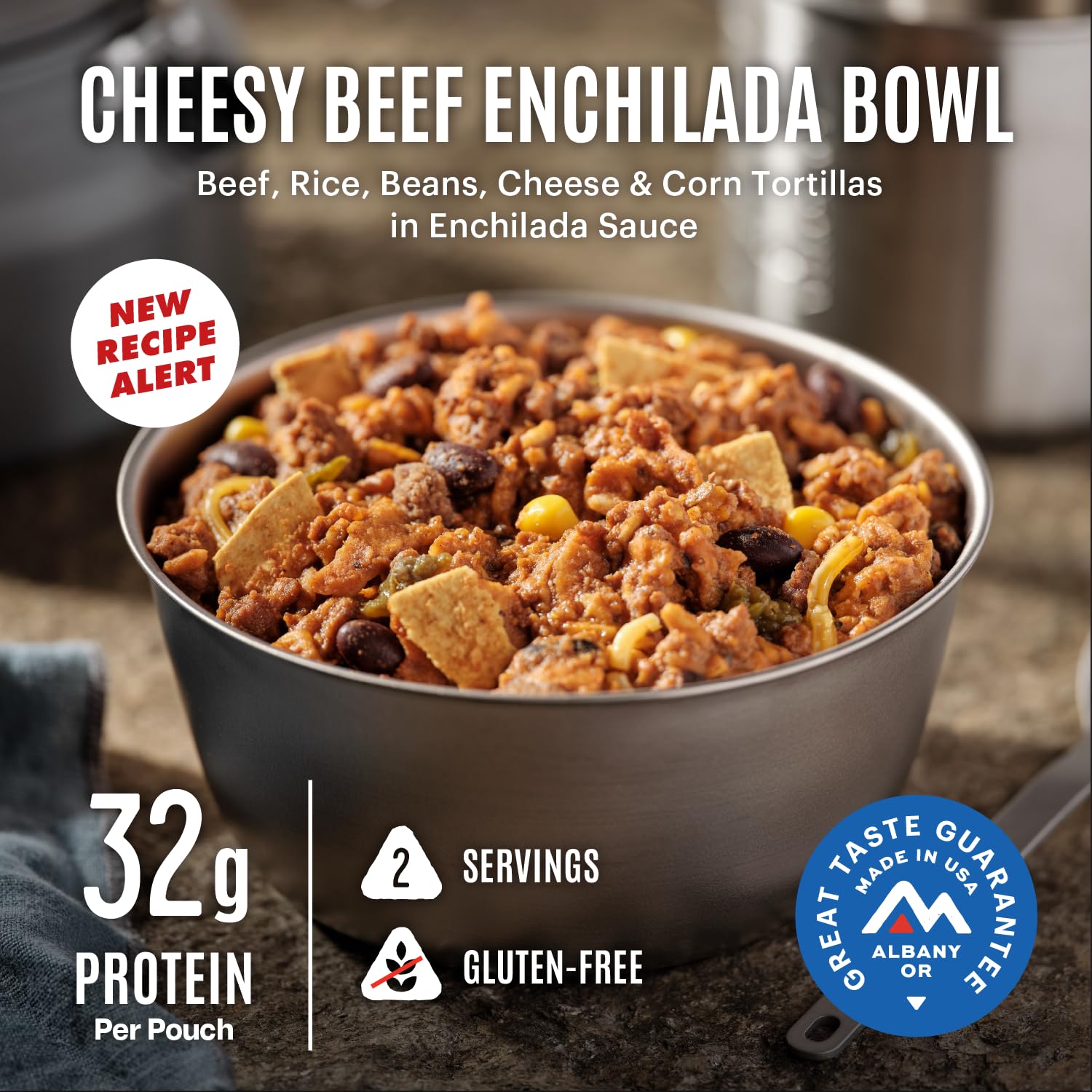 BEST-TASTING COMFORT FOOD - Made in the USA since 1969, we have been cooking up your favorite comfort food, and freeze-drying them to create the best-tasting and convenient outdoor adventure meals available. Enjoy beef, cheese, corn tortillas, rice, beans, and enchilada sauce.