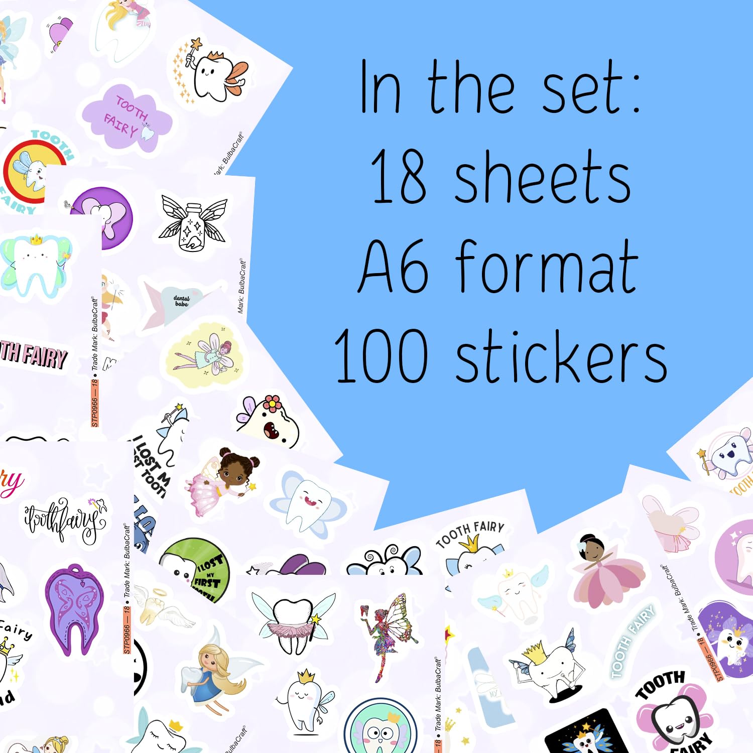 STICKER SHEETS - Tooth Fairy sticker pack contains several sheets. Sticker sheets are less likely to get damaged or bent compared to loose, cut-out stickers.