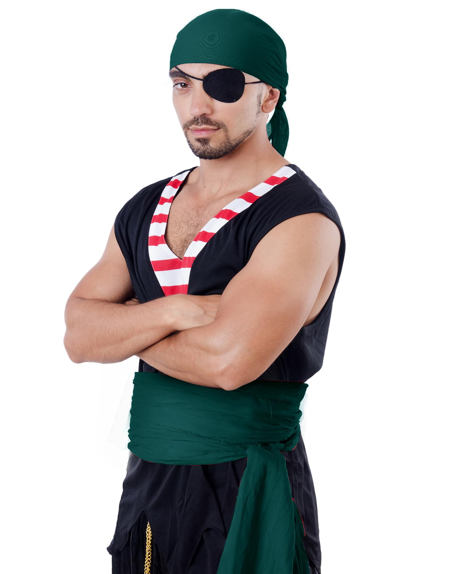 Package includes: 1 piece pirate bandana, 1 piece pirate large sash