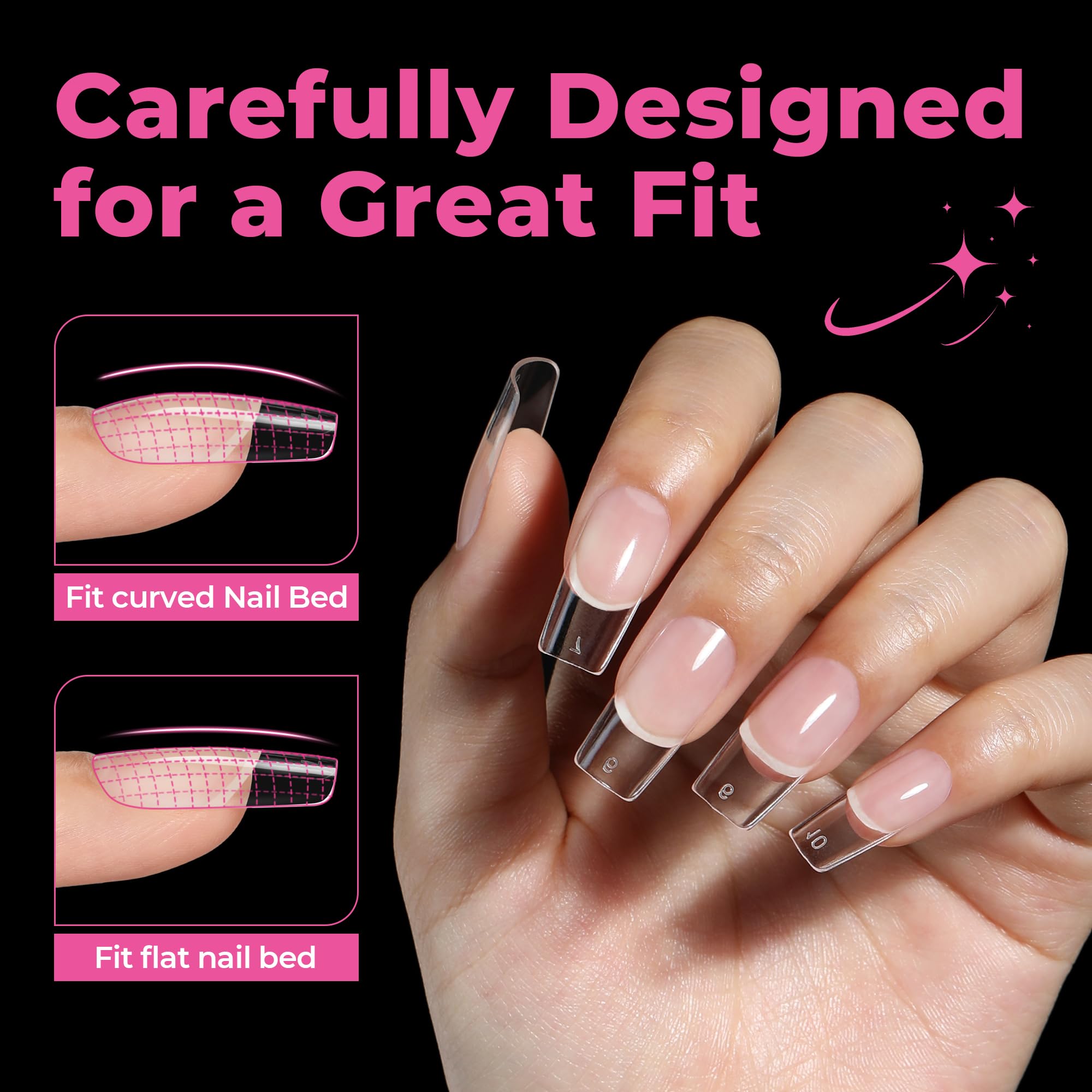 ❤️Easy Application: Our square tips have a shallow curve and smooth edges that make them easy to apply and press on your nails beds tightly, without any discomfort. You can also easily paint, trim, and customize the tips to match your style and preferences.