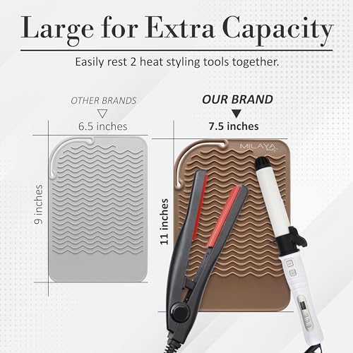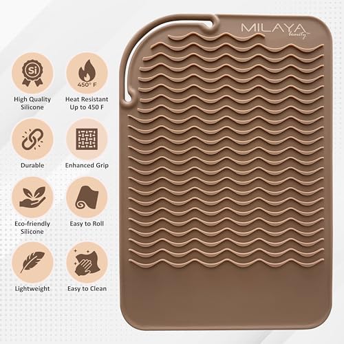 Introducing the Milaya Beauty heat resistant mat and Hot Iron Holster, the ultimate vanity accessories for all your hair tools! This heat-resistant silicone mat is designed to securely hold your flat iron, curling iron, and other hot hair tools while protecting your countertops from heat damage. With its sleek and compact design, it's perfect for salon use or for travel. The silicone material provides a non-slip grip, ensuring that your hair tools stay in place while you style. Say goodbye to tangled cords and burnt surfaces with this convenient and stylish hair tool holder. Get your Hot Iron Holster today and experience the ultimate organization and convenience for your hair styling routine.