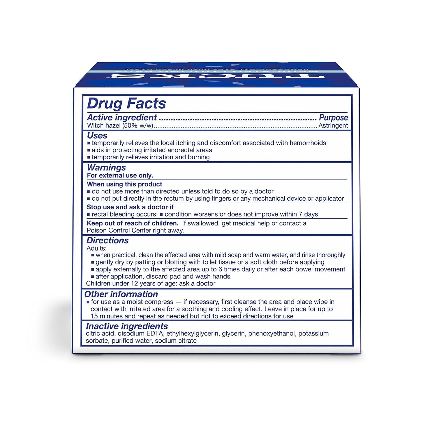 You can rely on these pads for immediate relief from the burning, itching and irritation associated with hemorrhoids. With witch hazel as its active ingredient, Tucks Medicated Cooling Pads soothe, cool, and protect irritated anorectal and vaginal tissue. This hemorrhoid pain relief product is pH balanced, hypo-allergenic, and dye-free. They are particularly helpful in relieving discomfort following childbirth, rectal, or vaginal surgery. Directions: When practical, clean the affected area with mild soap and warm water, and rinse thoroughly. Gently dry by patting or blotting with toilet tissue or a soft cloth before applying. Apply externally to the affected area up to six times daily or after each bowel movement. After application, discard pad and wash hands. For children under 12 years of age, ask a doctor.