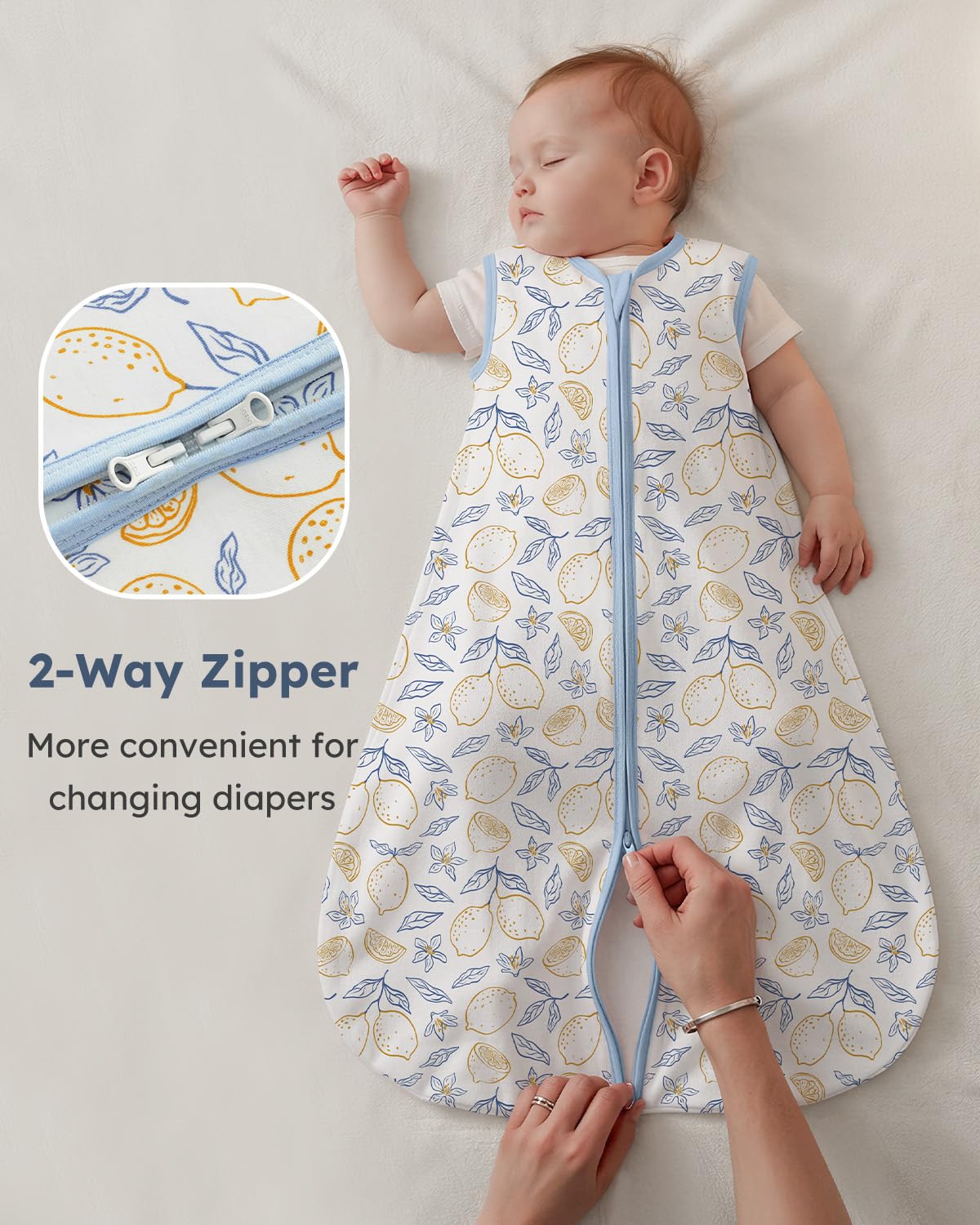 Smooth 2-Way Zipper: Our sleep sack double zipper makes midnight diaper change easily. The interior zipper guard and top zipper cover protect any scratches or discomfort from baby's delicate skins, ensuring the safety of your beloved baby.