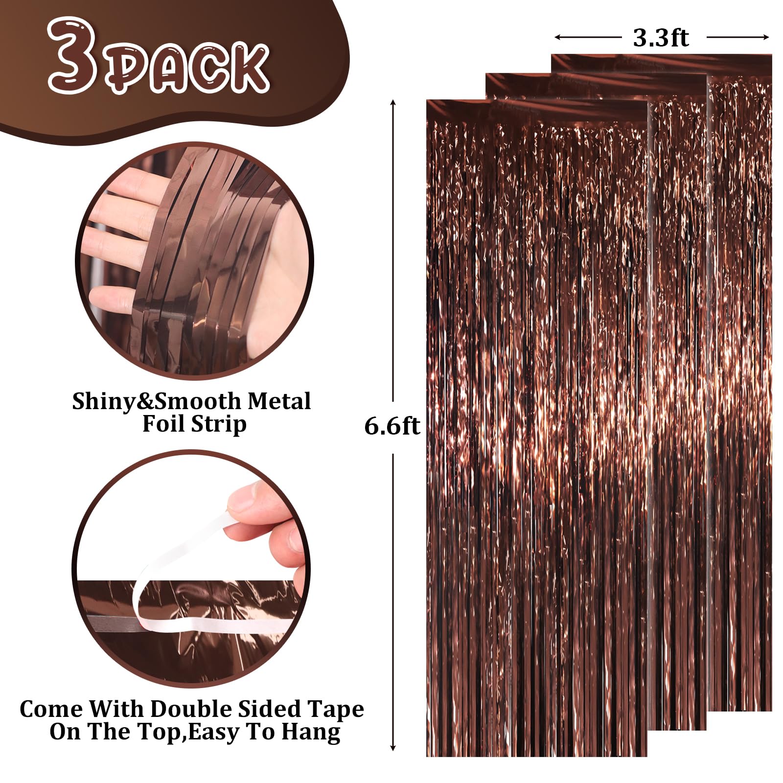 Stunning Decorative Set: You'll receive 3 pcs brown foil fringe backdrop curtains, each measuring 3.28 ft (wide)×6.56 ft (drop). Enough length foil fringe curtains backdrops are perfect for the door or wall to create an impressive decoration