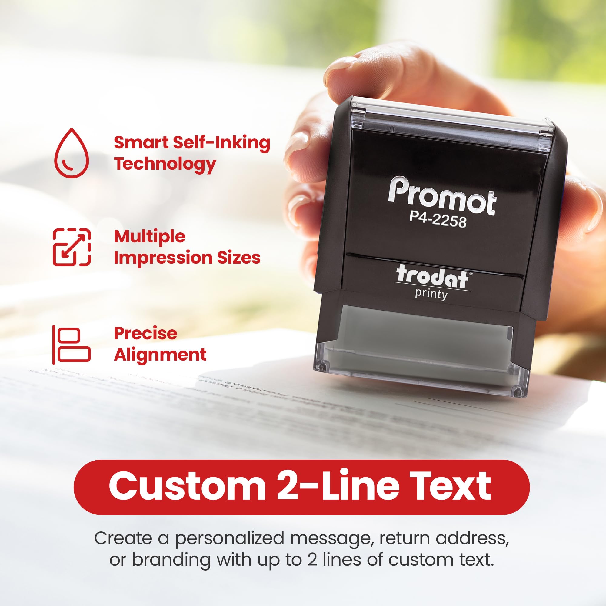 Smart Self-Inking Stamp: Promot's groundbreaking self-inking technology offers impeccable clarity and boldness in every print. With long-lasting ink stamps and pads, effortlessly create thousands of crisp impressions. Experience clean, hassle-free stamping with our user-friendly rubber stamps, perfect for professionals and businesses.