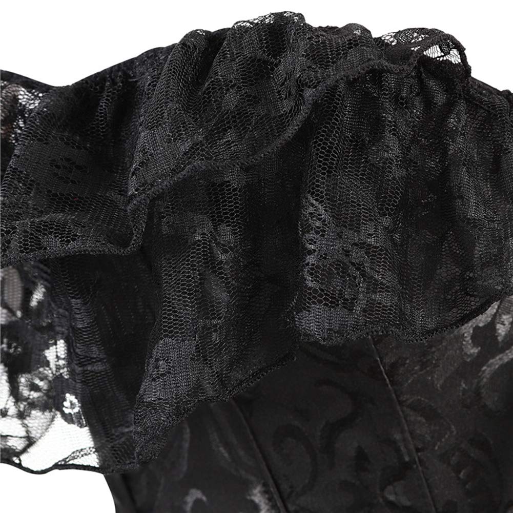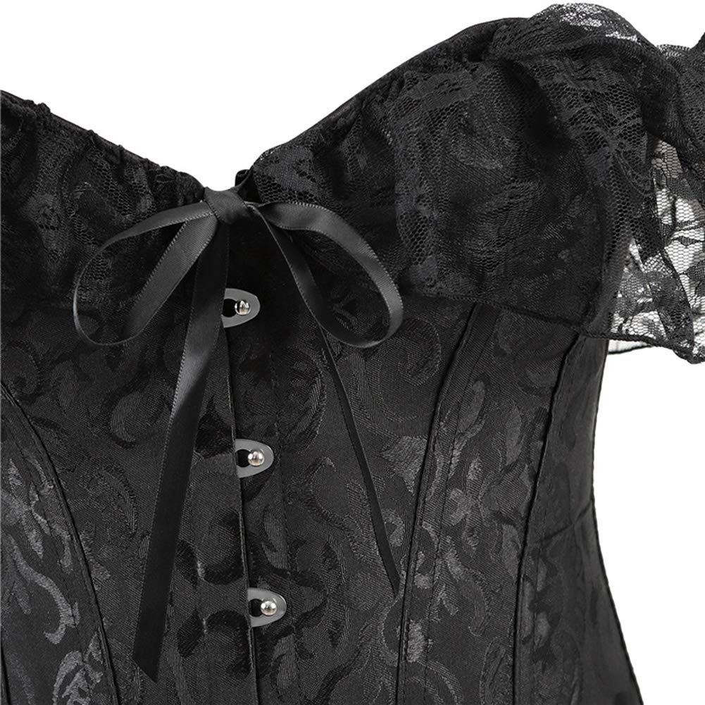 Description SHYMMUO Corset Top for Women Renaissance Steampunk Bustier Top Sexy Lace Up Corset Top Festival Pirate Halloween Costume Turn heads and shape curves in this stunning off-shoulder corset top for women. Made from elegant satin jacquard fabric with intricate vintage-inspired patterns, this lace-up bustier combines timeless style with modern comfort. Featuring off-the-shoulder lace sleeves, a front busk closure, and an adjustable lace-up back, this structured steampunk corset top is both fashionable and functional. Whether you're dressing up for a renaissance festival, a burlesque show, a gothic party, or need a bold corset costume for Halloween, this piece is a versatile addition to any corset lover’s wardrobe. With built-in supportive steel boning, this sexy lingerie top enhances your natural curves while offering waist-slimming definition. Pair it with a flowing skirt, leather pants, or layered under a jacket to create countless striking looks. This vintage corset top is more than just shapewear—it’s a style statement. Please choose corset according to your waist and bust size Size Chart X-Small Corset Fit Waist: 23-25" , Bust: 30-32" Small Corset Fit Waist: 25-27" , Bust: 32-34" Medium Corset Fit Waist: 27-29" , Bust: 34-36" Large Corset Fit Waist: 29-31" , Bust: 36-38" X-Large Corset Fit Waist: 31-33" , Bust: 38-40" XX-Large Corset Fit Waist: 33-35" , Bust: 40-42" 3X-Large Corset Fit Waist: 35-37" , Bust: 42-44" 4X-Large Corset Fit Waist: 37-39" , Bust: 44-46" 5X-Large Corset Fit Waist: 39-41" , Bust: 46-48"