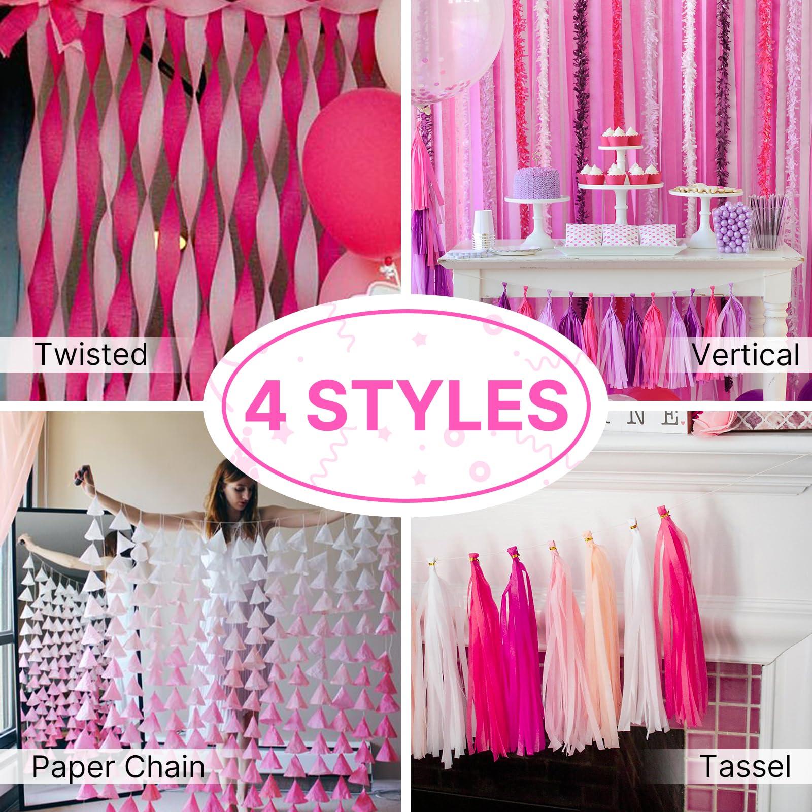 Each roll 82 feet long 1.8 inch wide: package includes light pink crepe paper (4 rolls)