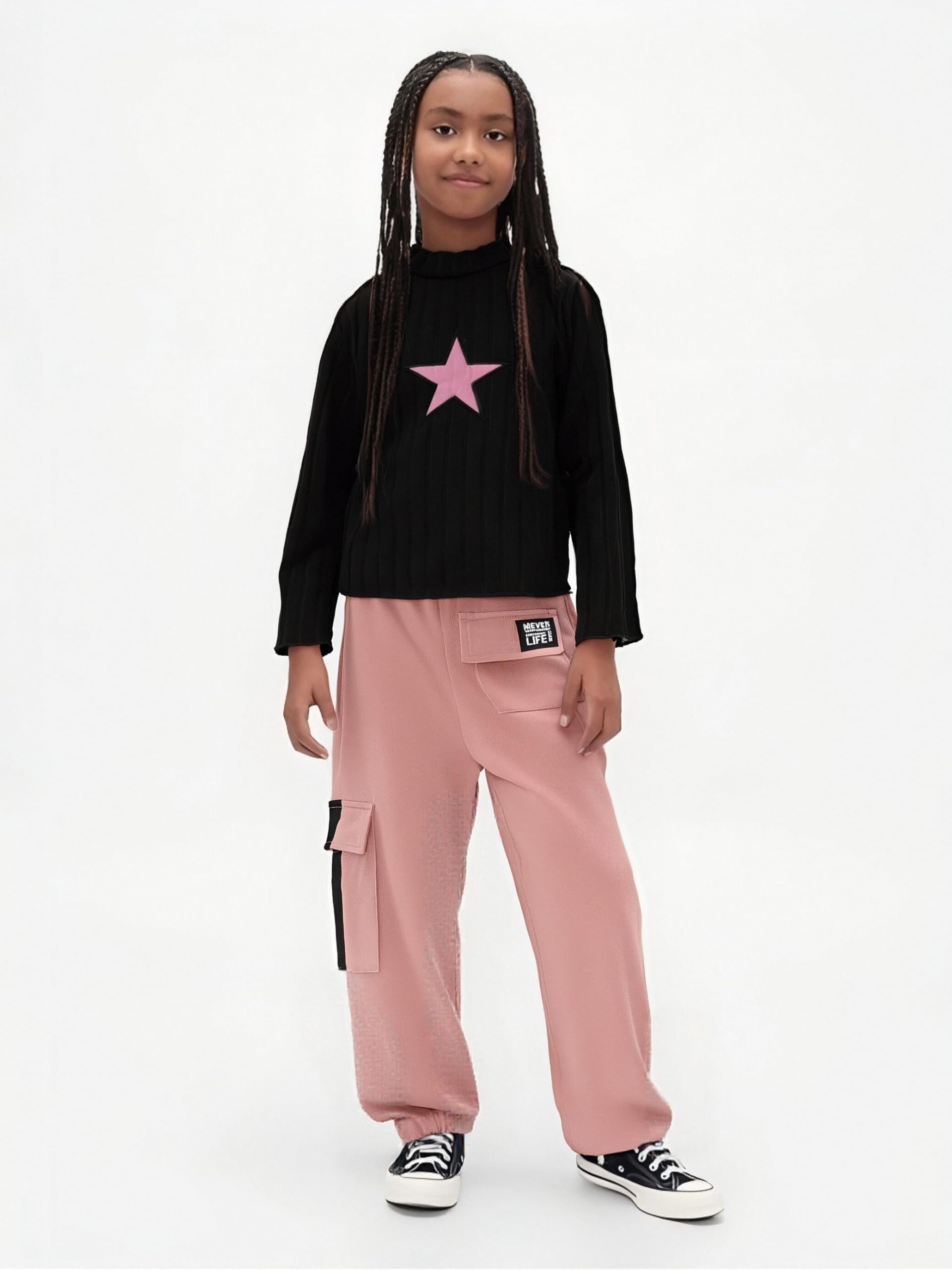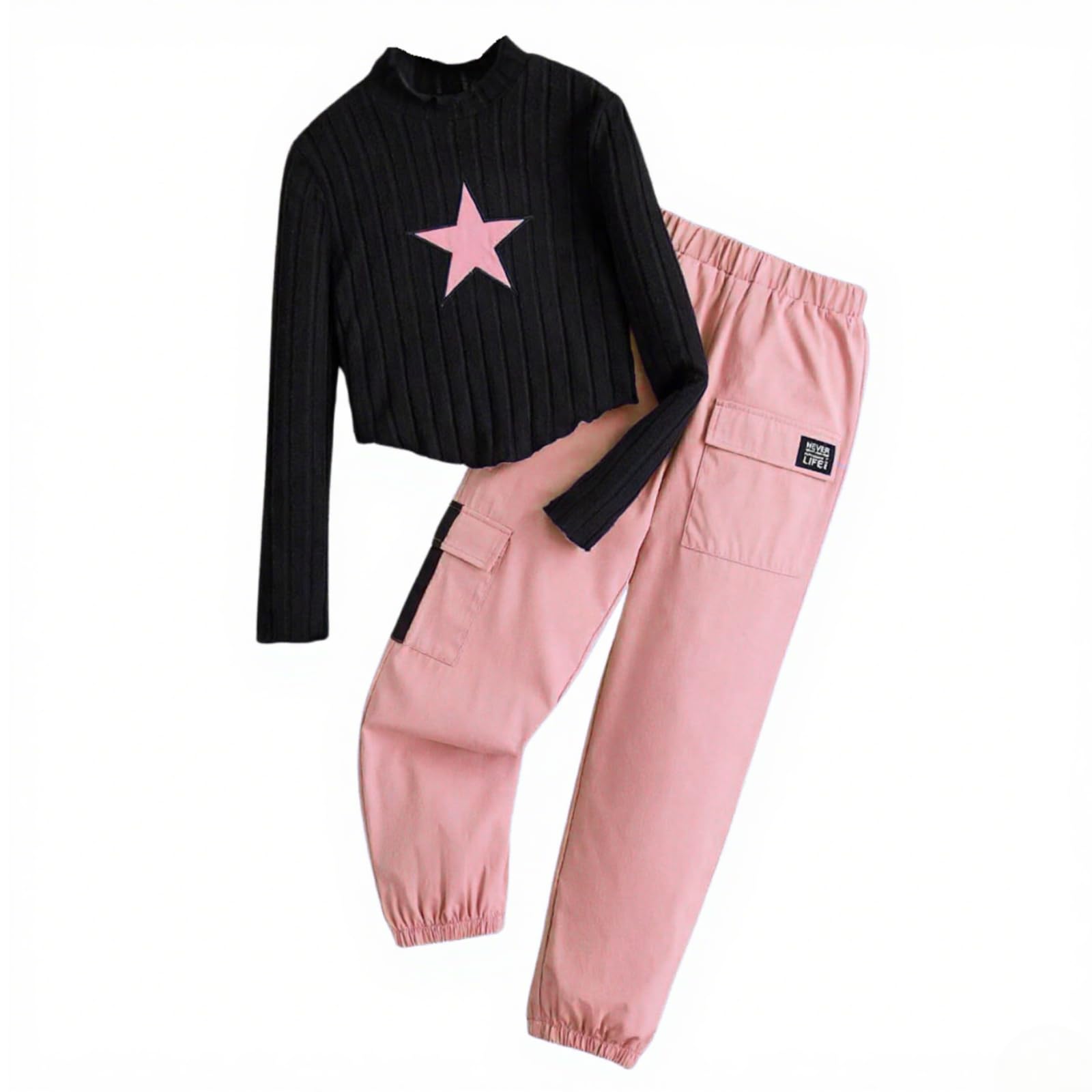 🎨 Stylish Design Details - Features a ruched long sleeve sweater top with a classic crew neck and trendy cargo jogger pants. The fashionable combo blends casual comfort with modern tween girls' fashion.