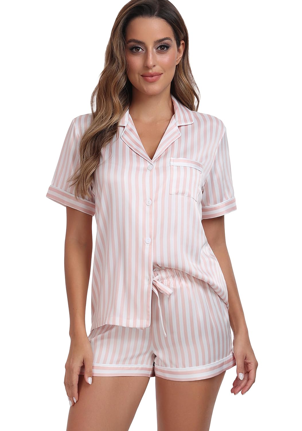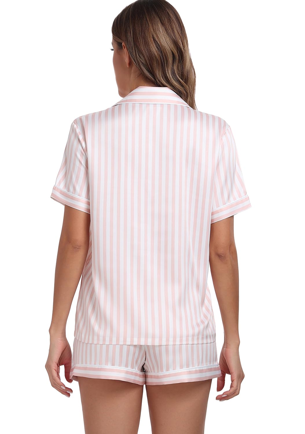 COMFORTABLE FABRIC: Made of high quality silk-like satin fabric, this pajama set is soft and lightweight, perfect for sleeping, lounging, or daily casual wear.
