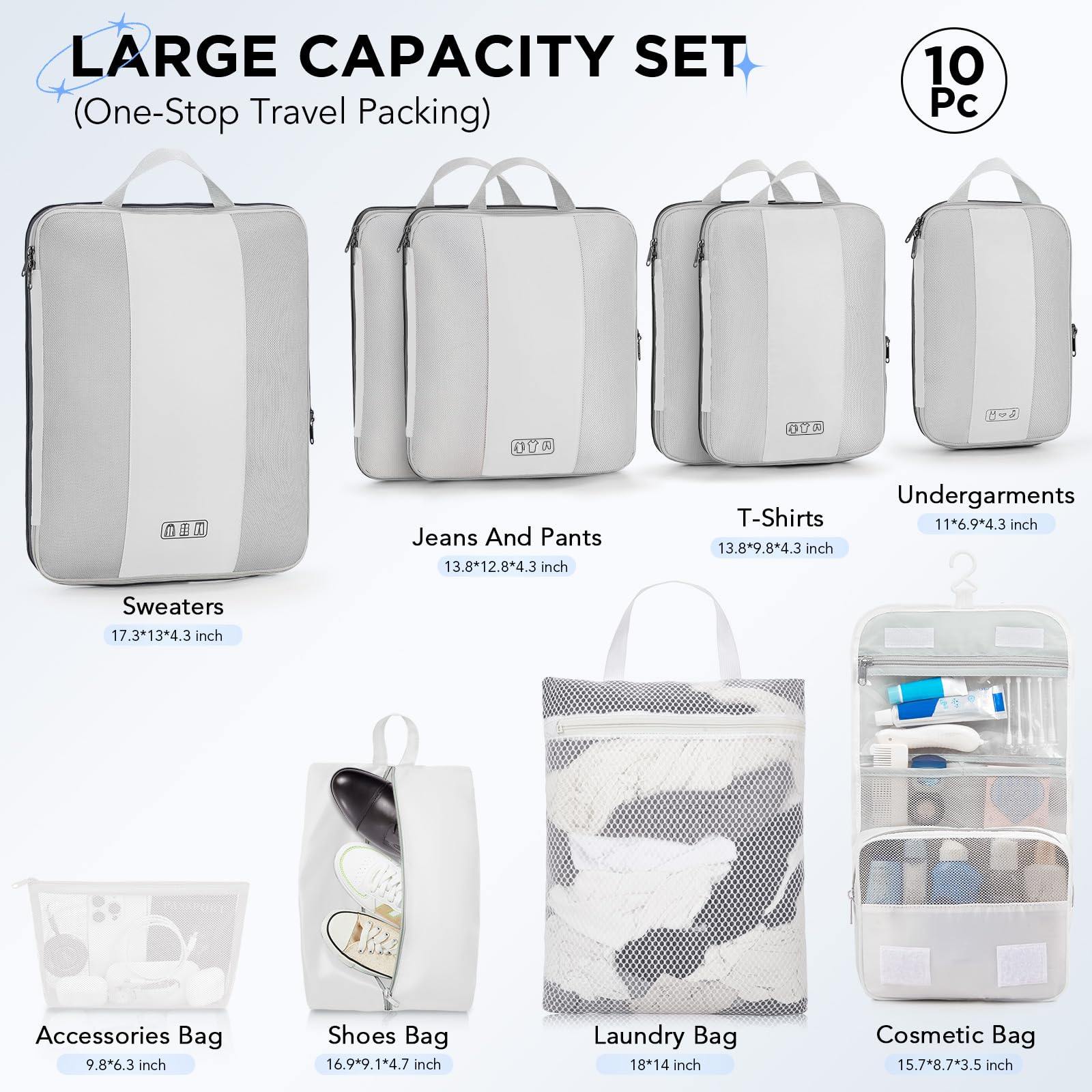 Ready for Any Adventure - Whether you’re heading out for a weekend getaway, a business conference, or a month-long backpacking trip, This high-capacity 10-piece compression cet seamlessly accommodates 20-32-inch suitcases of all types. We’re here to ensure you travel smarter, pack better, and enjoy every moment of your journey with peace of mind.