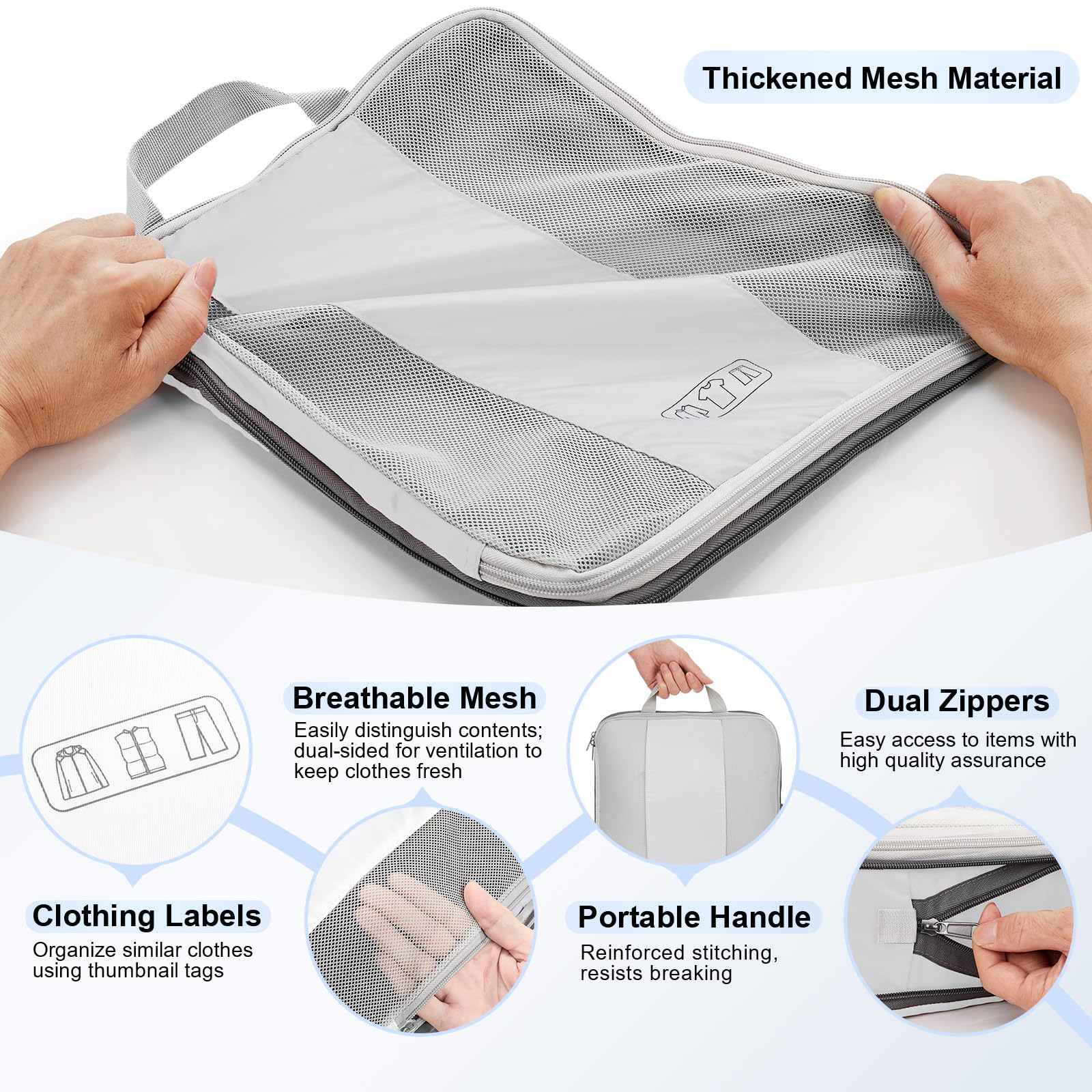 Maximize Packing Efficiency - Make every inch of your luggage count! These compression cubes work like a mini vacuum sealer, using an extra outer zipper to reduce bulk and create more space. Pack more clothes without sacrificing options—your favorite outfits, now travel-ready.