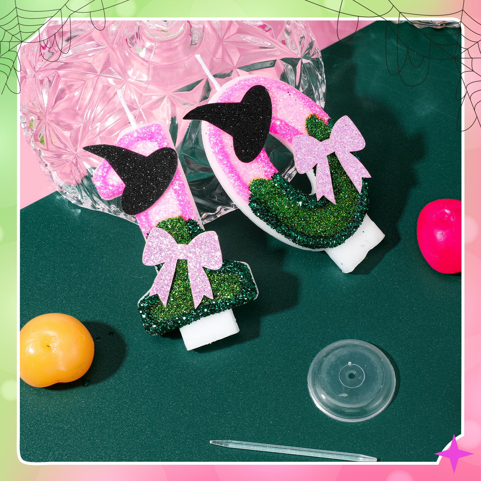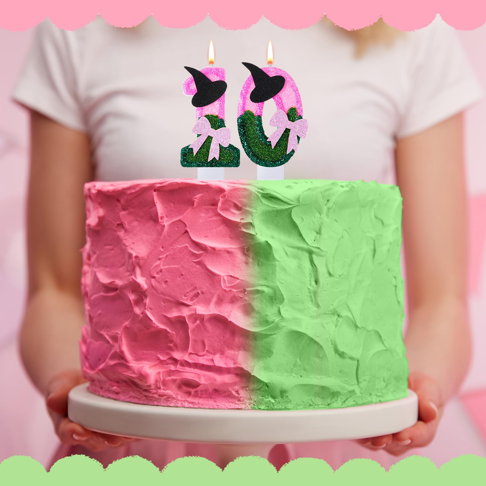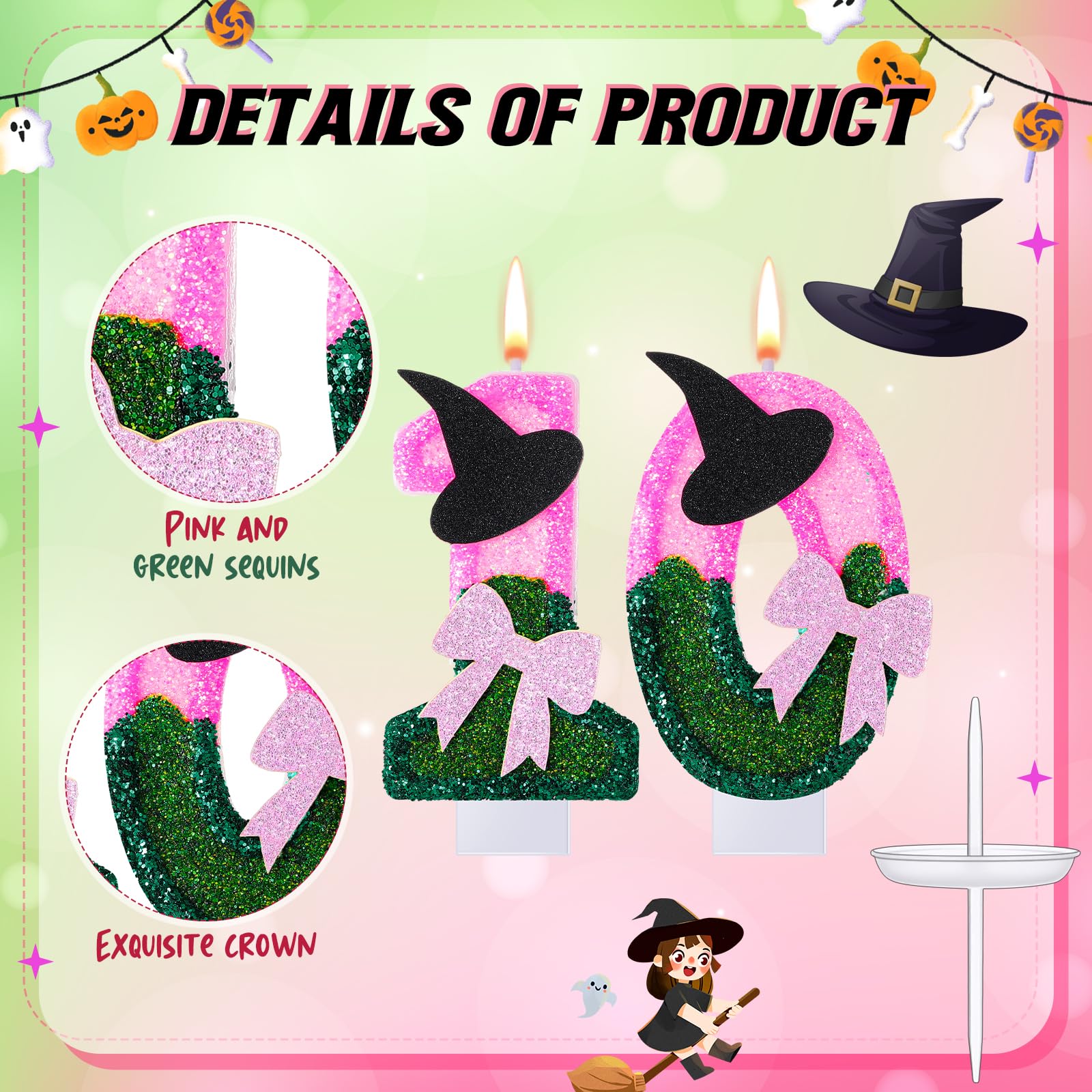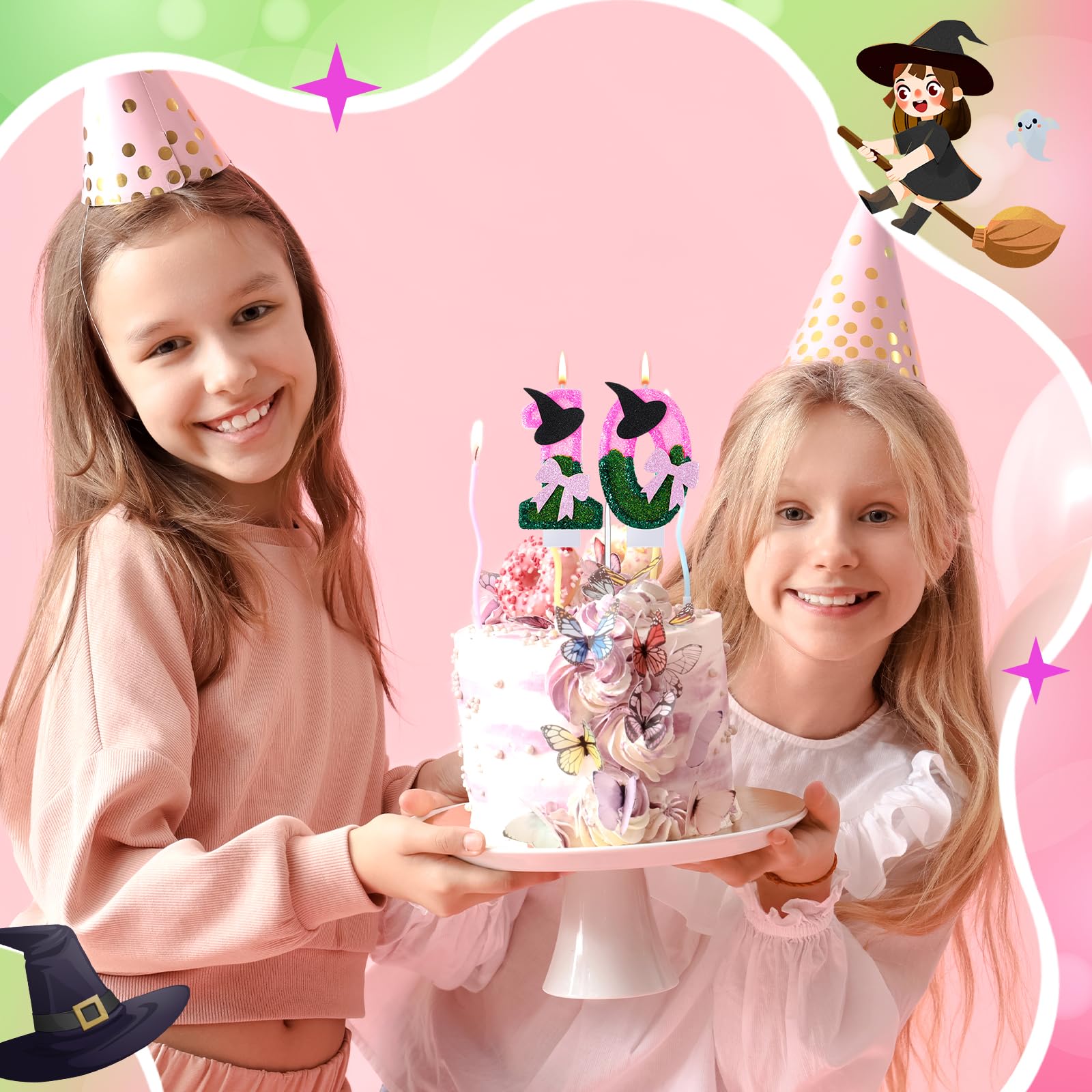 Witch Princess Theme Candle: this birthday number candle is designed in pink and green and decorated with a witch hat and bow to make your cake even more beautiful; Each candle is carefully crafted and includes a candlestick to keep your cake wax free