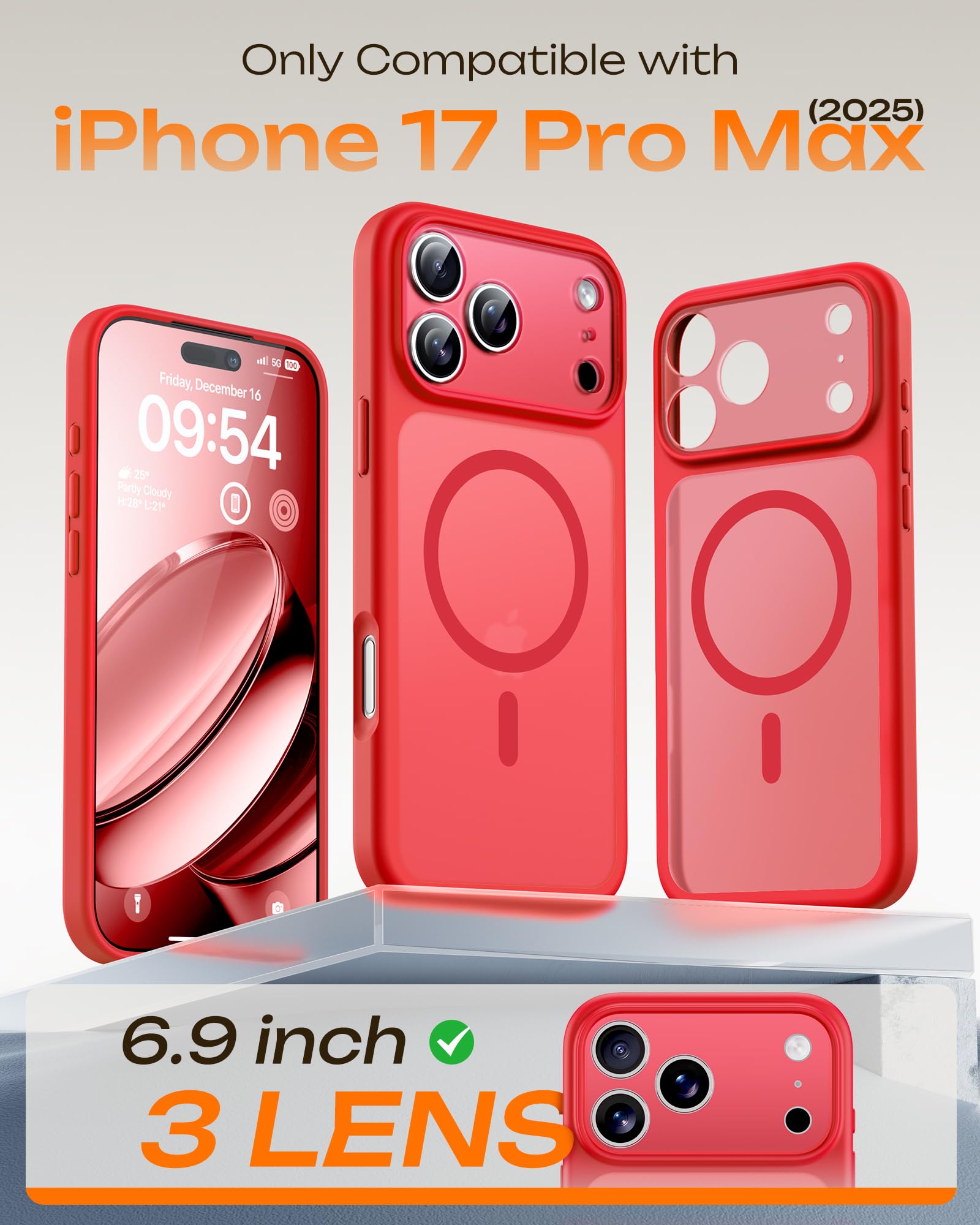 Embedded Magnetic Ring:Upgraded for iPhone 17 Pro Max Magnetic Case. Built-in magnetic ring never falls off. 18N ultra-strong power, perfect for all your Mag accessories. It holds up well on your Mag car mount, even over strong bumps