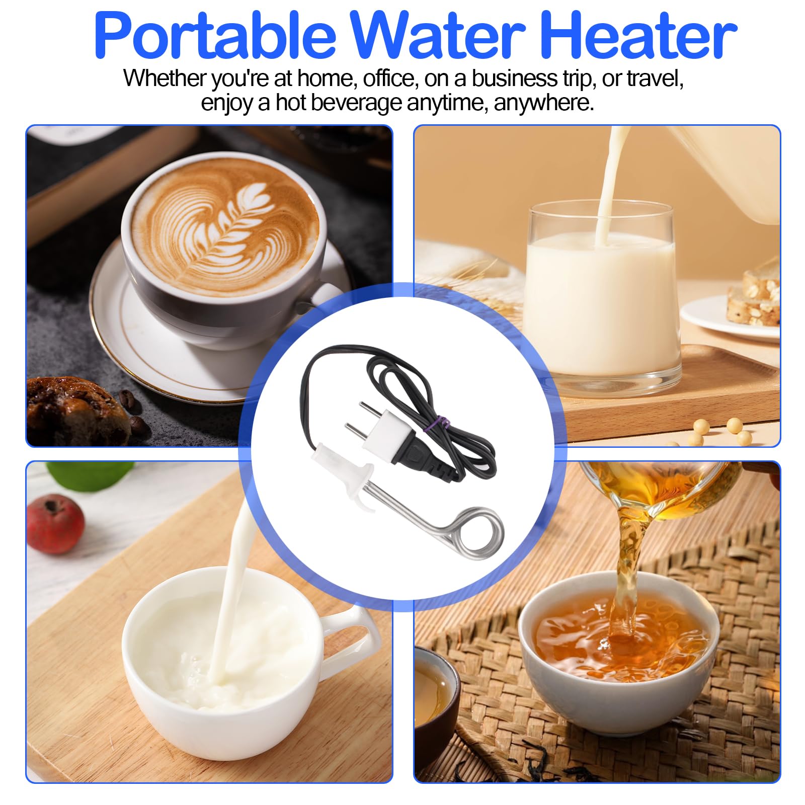 Electric Immersion Water Heater Portable: Travel water heater for tea whether you're at home, in the office, traveling for business or leisure, this portable water heat element allows you to enjoy hot beverages anytime, anywhere, bringing more convenience to your life!
