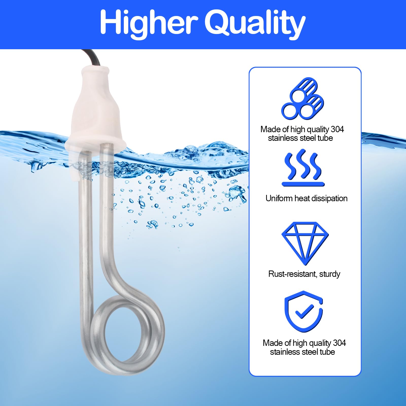 Higher Quality: Portable immersion water heater coffee is made with a premium-grade 304 stainless steel tube that dissipates heat evenly, ensuring uniform heat distribution. Cup immersion heater It's also rust-resistant, super-sturdy, and built to last.