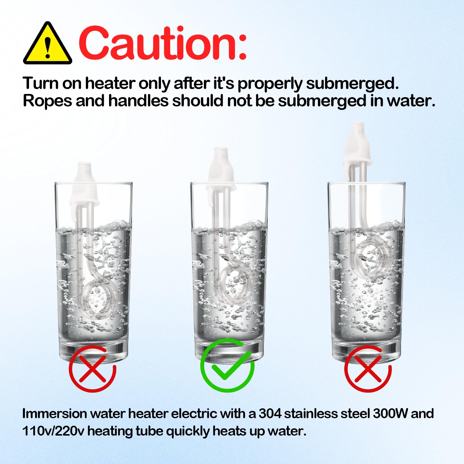 Camping Water Heater Portable Electric Immersion: Immersion water heater electric camping with a 304 stainless steel heating tube quickly heats up water, coffee, milk, tea, or any other drink. Single cup water heater it's a great and energy-efficient alternative to an electric kettle, 300w water heater immersion and 110v/220v to swiftly heat up water or other drinks on the go.