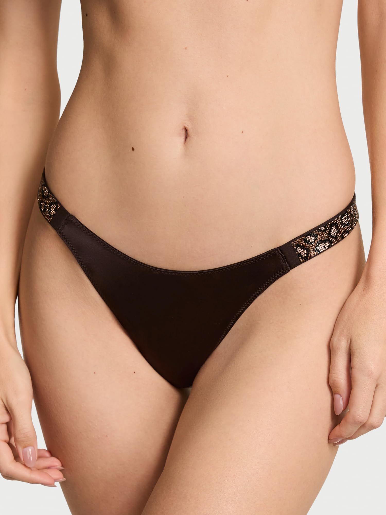 This barely there Thong gets dressed up this season with our updated logo shine straps for a dazzling finish.