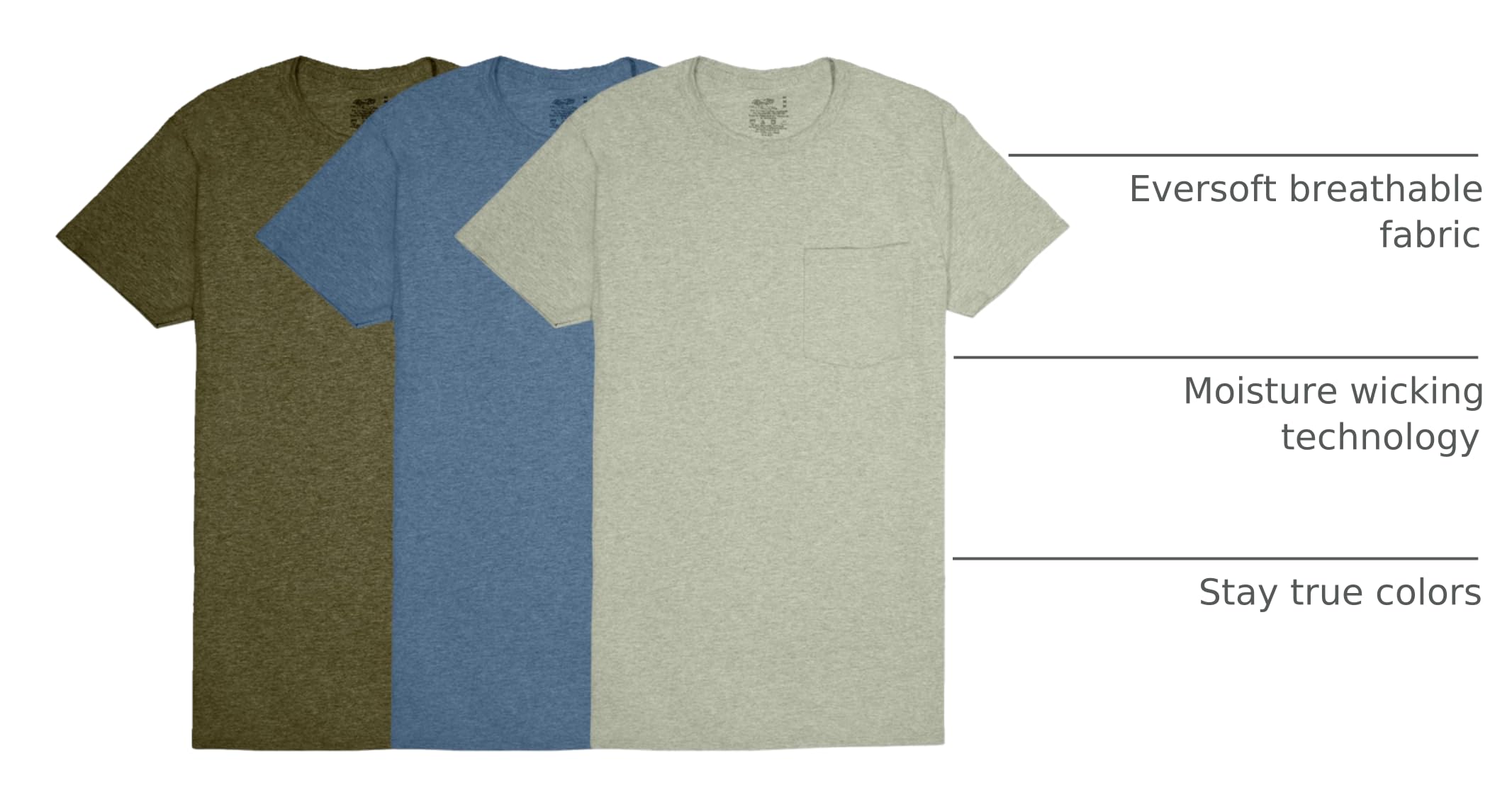 Description Our Men's Pocket T-shirts are a casual wardrobe staple that you are going to love to live in. Featuring a collar, super soft cotton and reinforced pocket, the Fruit of the Loom® men's Pocket T-shirts are designed for comfort and made to last. Each shirt has long lasting construction and quality that you can expect from Fruit of the Loom®. Live your life more comfortably with Fruit of the Loom® men's Pocket T-shirt. These are designed to wick moisture away, so you can stay cool and dry.