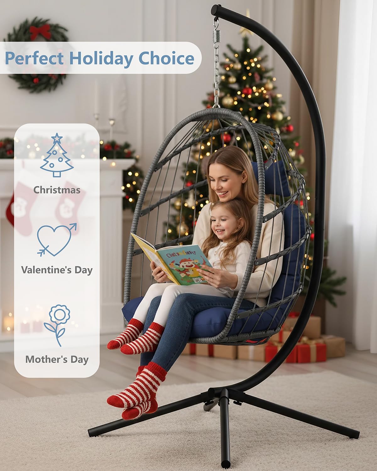 Ergonomic Comfort That Lasts: Sink into a thick, breathable cushion and ergonomic headrest. Your indoor egg chair gently hugs your curves for support while reading, napping, or scrolling—all day long